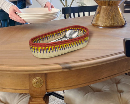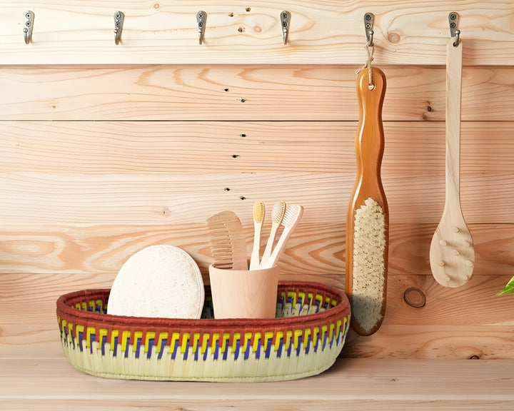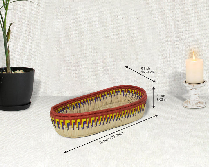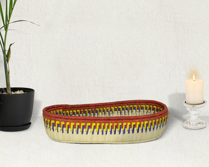 Add a touch of artisanal charm to your home with our 12-Inch Handwoven Oval Bread Tray, a beautiful fusion of boho aesthetics, rustic warmth, and timeless craftsmanship. Designed for both style and functionality, this tray is perfect for serving fresh bread, organizing essentials, or displaying as wall décor in your kitchen or dining space.