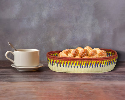 Brown & Natural Woven Oval Bread Tray OT-1006-L