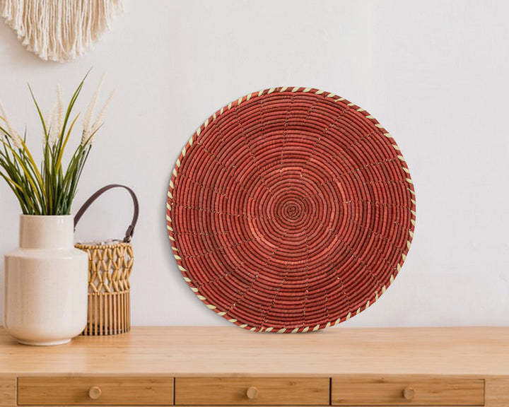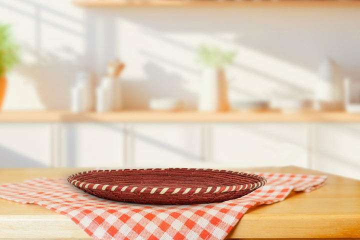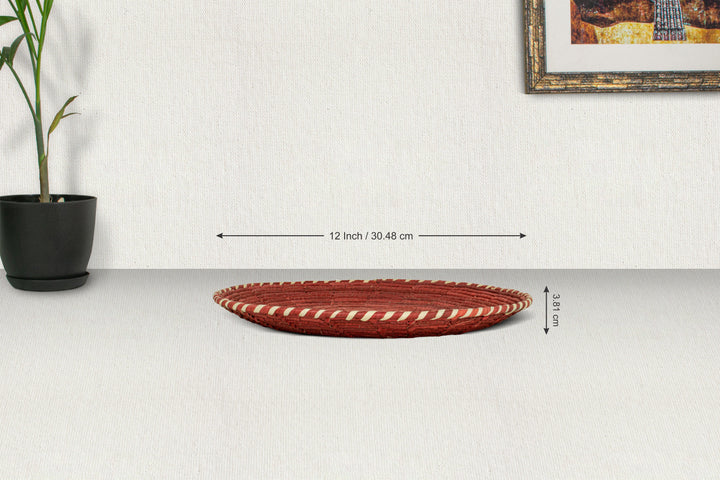 Bring warmth, texture, and artisanal beauty into your space with our bohemian elegance to your home with our 12-inch Handwoven Flat Basket - A perfect blend of rustic beauty and artisan craftsmanship. Woven from natural palm leaves, sea grass, and plant-based dyes. This stunning basket brings warmth, texture, and an organic feel to any space.