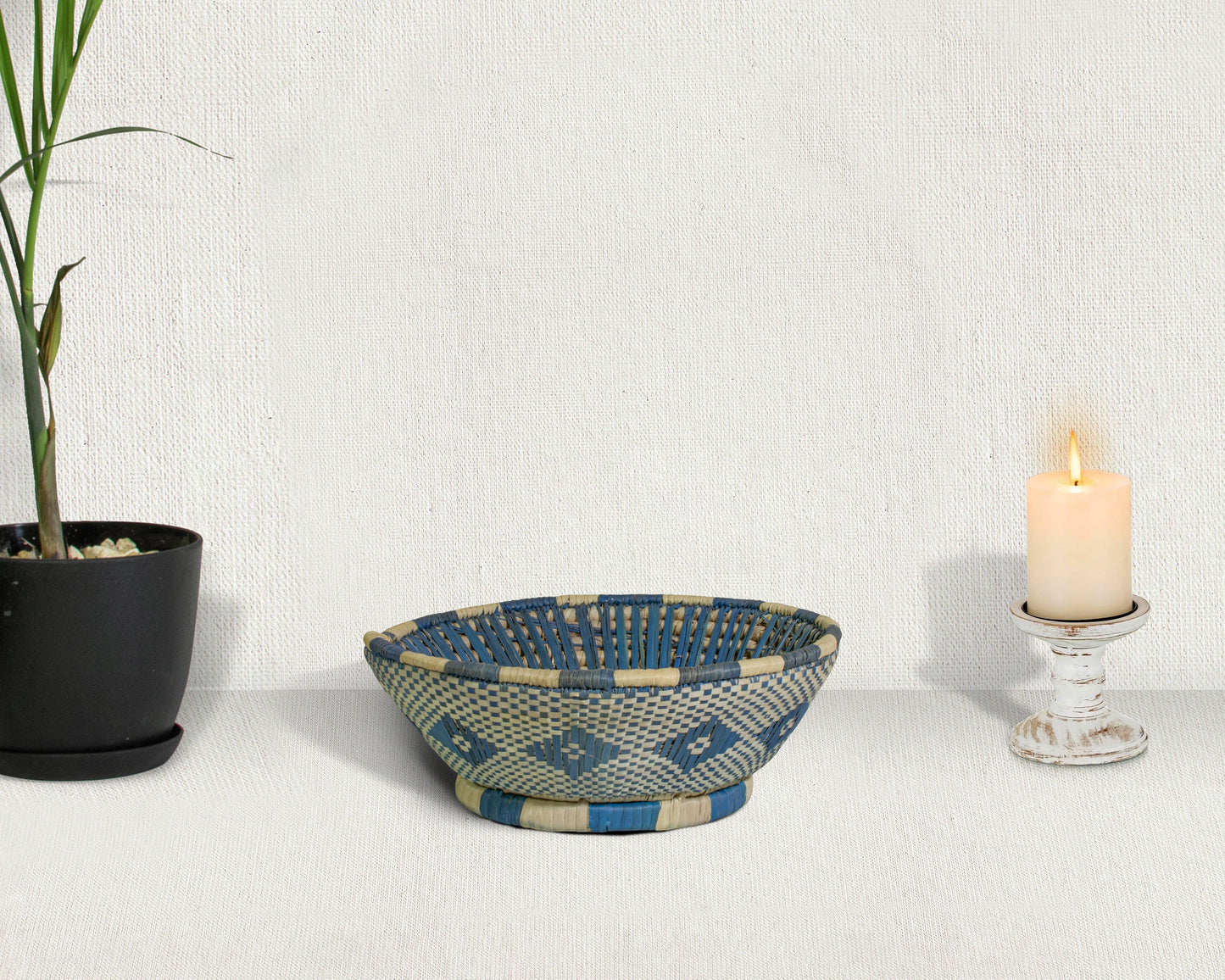 Transform your space with our Blue Orion 7-inch Handwoven Fruit & Vegetable Bowl basket, a stunning piece that brings natural beauty to your home. Expertly crafted by skilled artisans using eco-friendly palm leaves, wheat straws, and natural dyes, this bowl blends sustainability with artisan craftsmanship. Every bowl is uniquely handwoven, ensuring that each piece is a one-of-a-kind treasure that adds warmth and character to any room. Perfect for elevating your décor, it’s not just functional but a true work of art for your home.