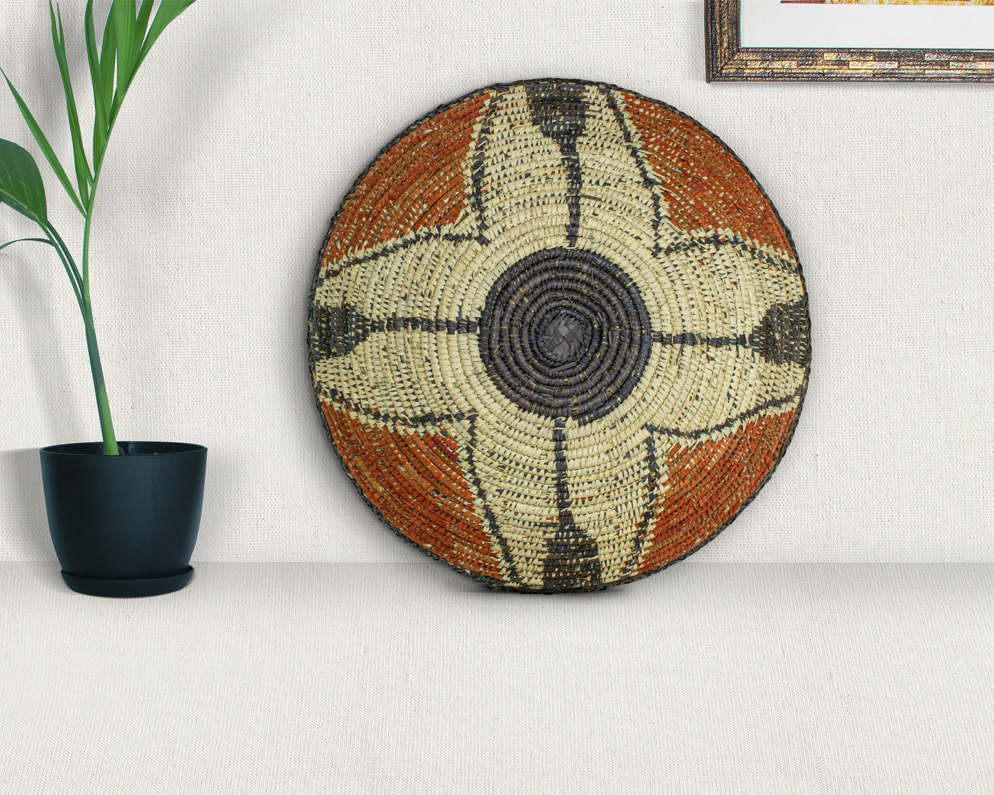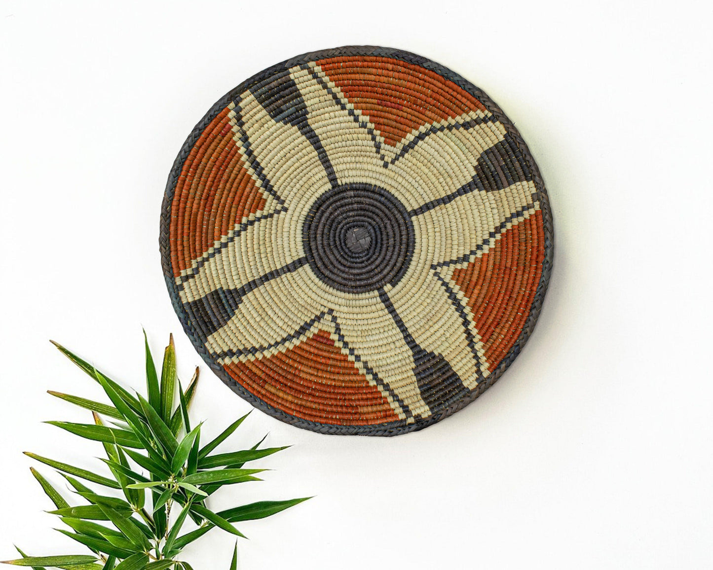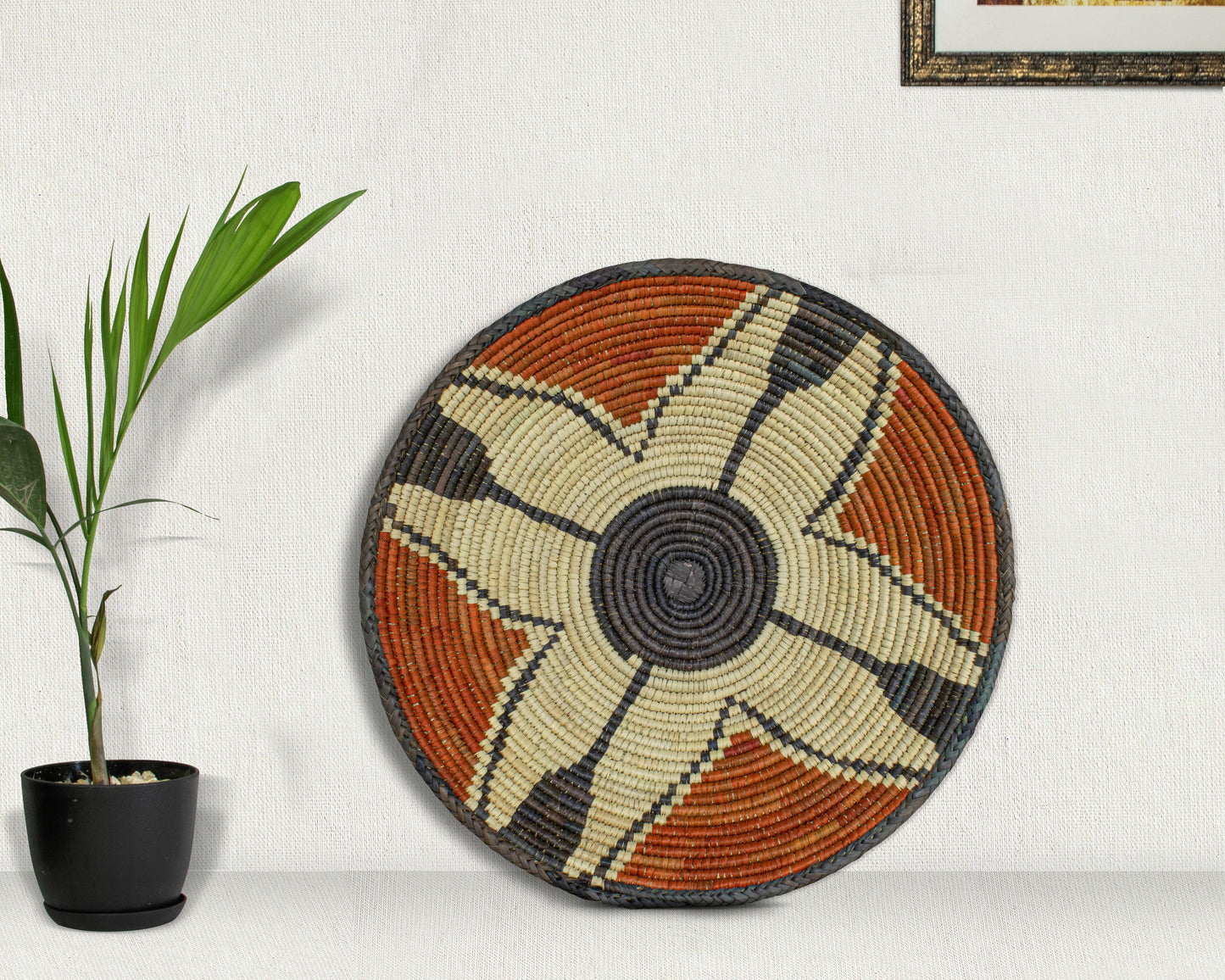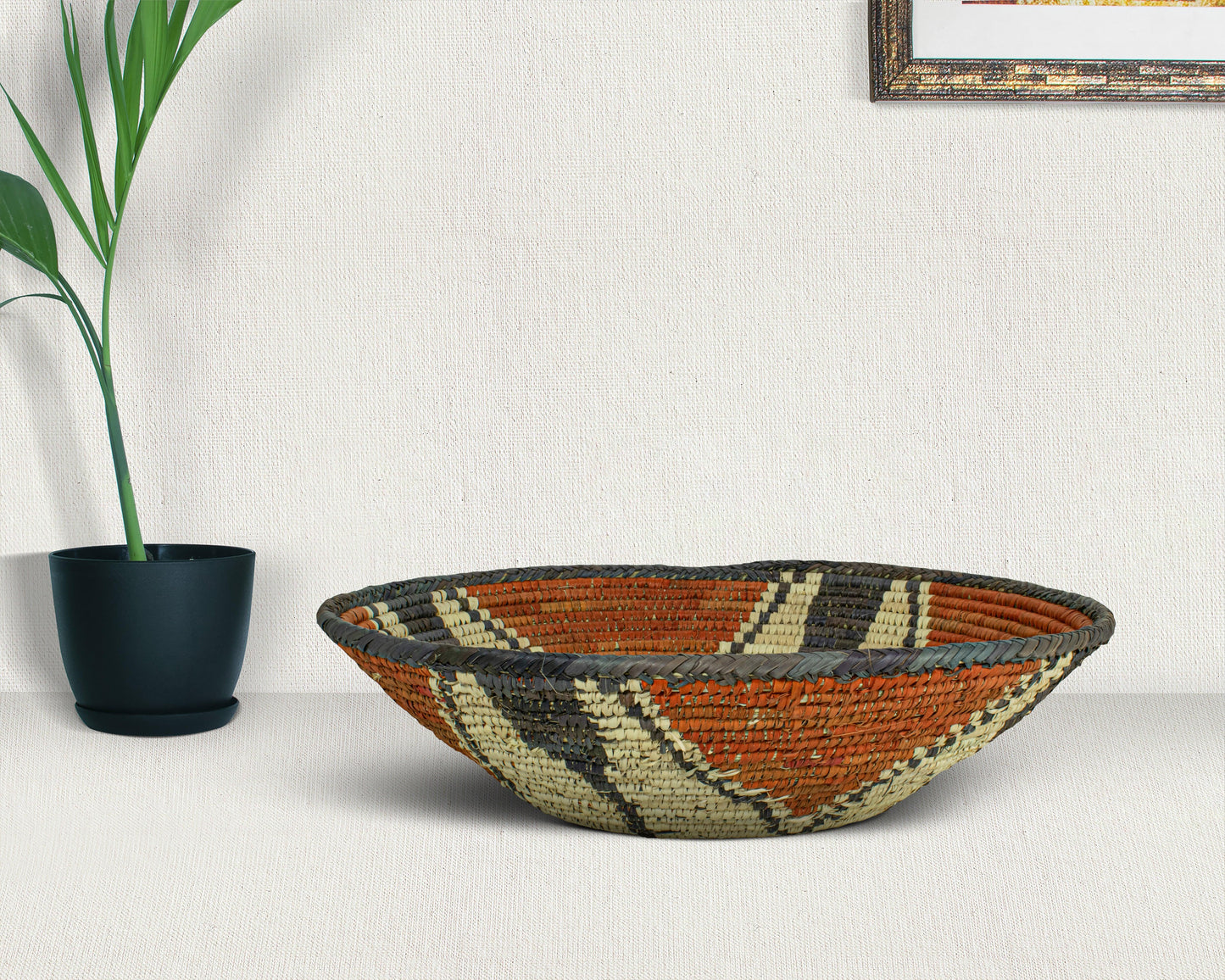 Elevate your space with the timeless charm of our 16-inch Handwoven Bowl Basket, a perfect blend of boho elegance, rustic warmth, and artisanal craftsmanship. Woven with care from natural palm leaves, sea grass, and plant-based dyes. This basket adds organic texture and a touch of heritage to your home. Whether displayed as a stunning wall decor piece, a stylish fruit bowl, or an entryway accent, its versatility shines through.