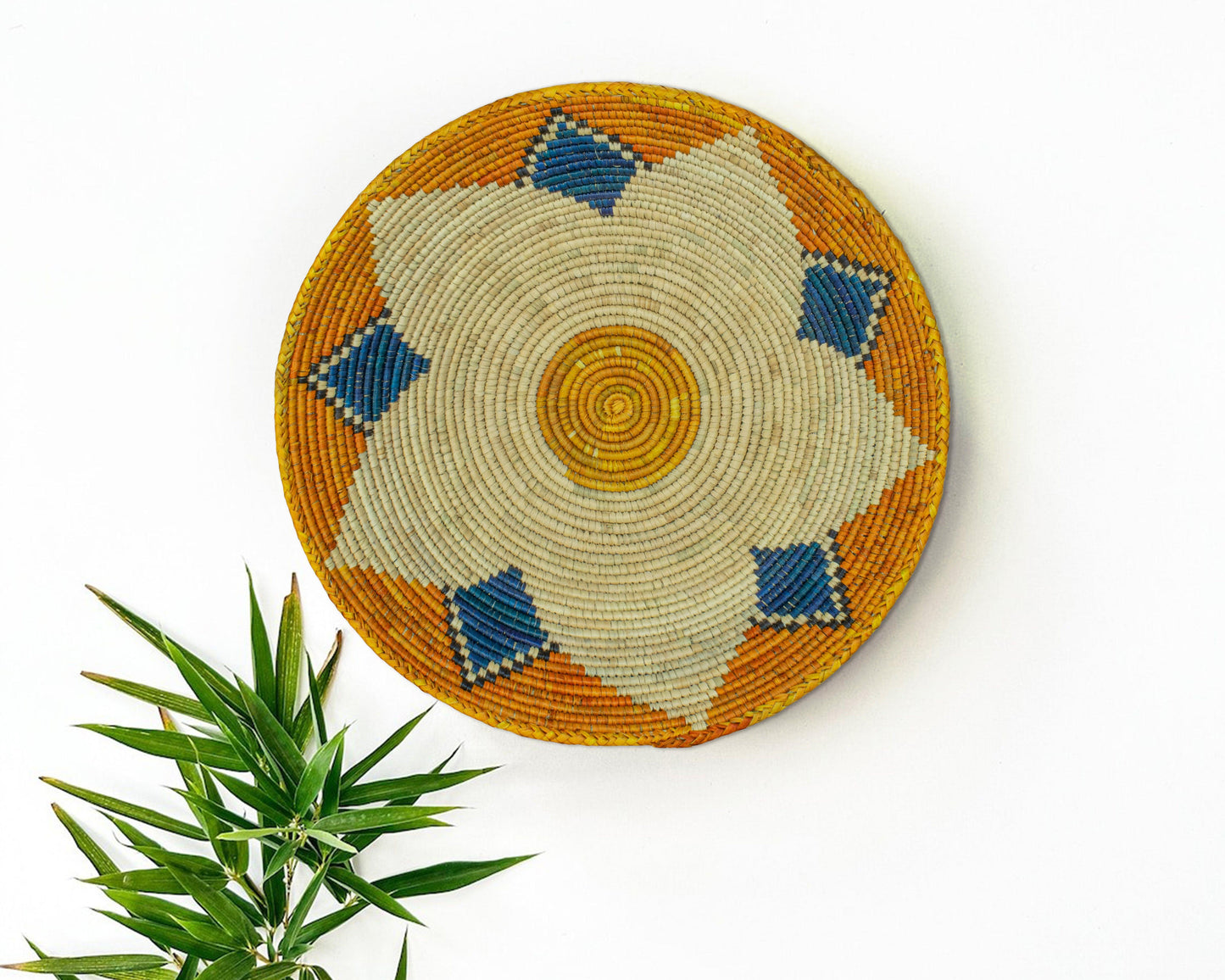 Elevate your space with the timeless charm of our 16-inch Handwoven Bowl Basket, a perfect blend of boho elegance, rustic warmth, and artisanal craftsmanship. Woven with care from natural palm leaves, sea grass, and plant-based dyes. This basket adds organic texture and a touch of heritage to your home. Whether displayed as a stunning wall decor piece, a stylish fruit bowl, or an entryway accent, its versatility shines through.