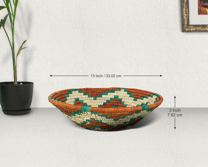 Bring the warmth and beauty of the artistry into your home with our Radiance Pool 13-inch Handwoven Bowl Basket. This stunning piece blends traditional Navajo-inspired design. Imagine this basket as the centerpiece of your dining table, filled with vibrant fruit, or gracing your living room shelf. Expertly handwoven by skilled artisans, this bowl showcases intricate details made from natural palm leaves, wheat straws, and plant-based dyes. Each basket is a testament to artisanal skill, offering texture, warmth, and a touch of Southwestern-Inspired charm to your home.