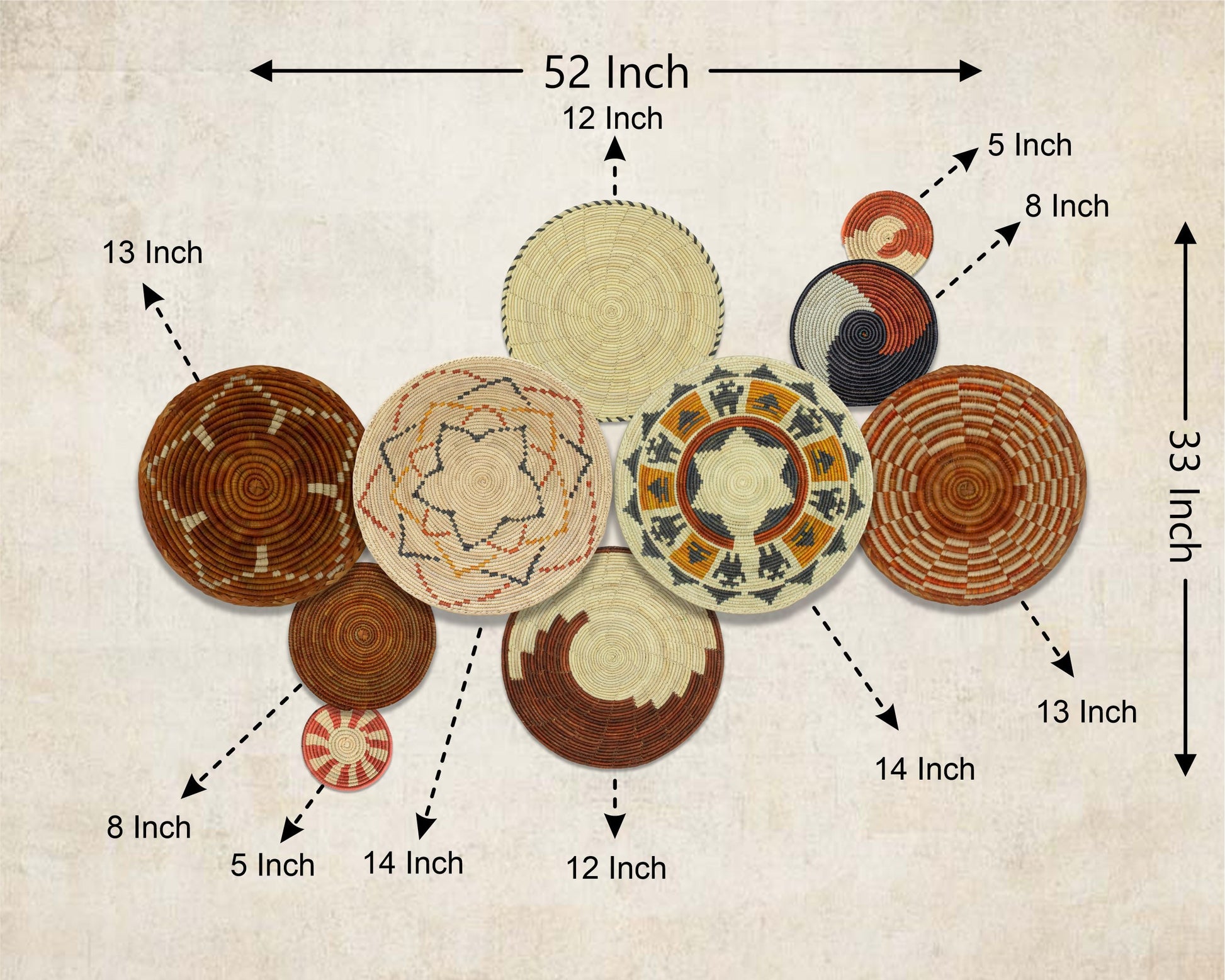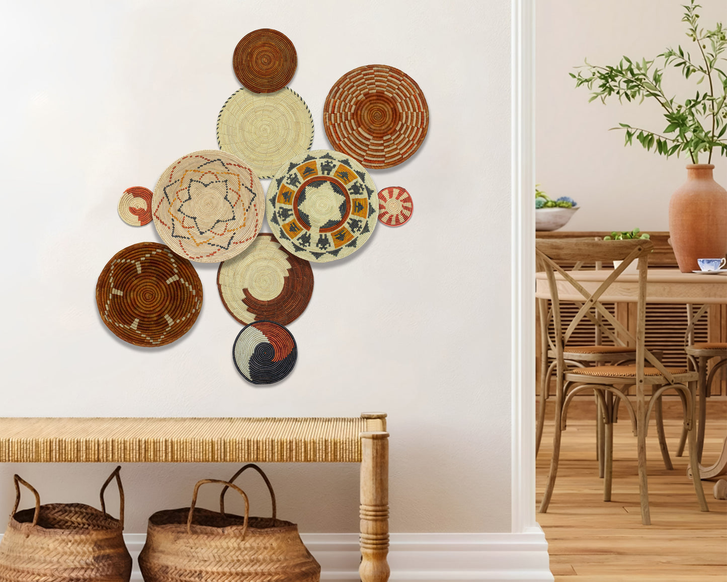 Set of 10 Handwoven wall baskets SET-407-10 N
