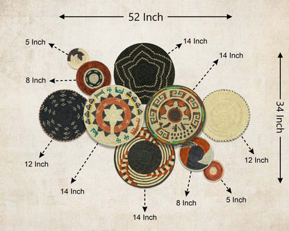 Set of 10 Handwoven wall baskets SET-411-10 N