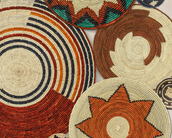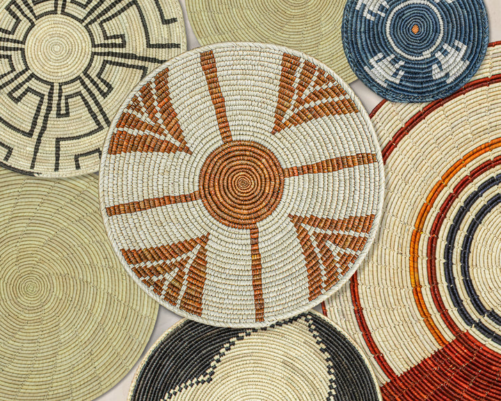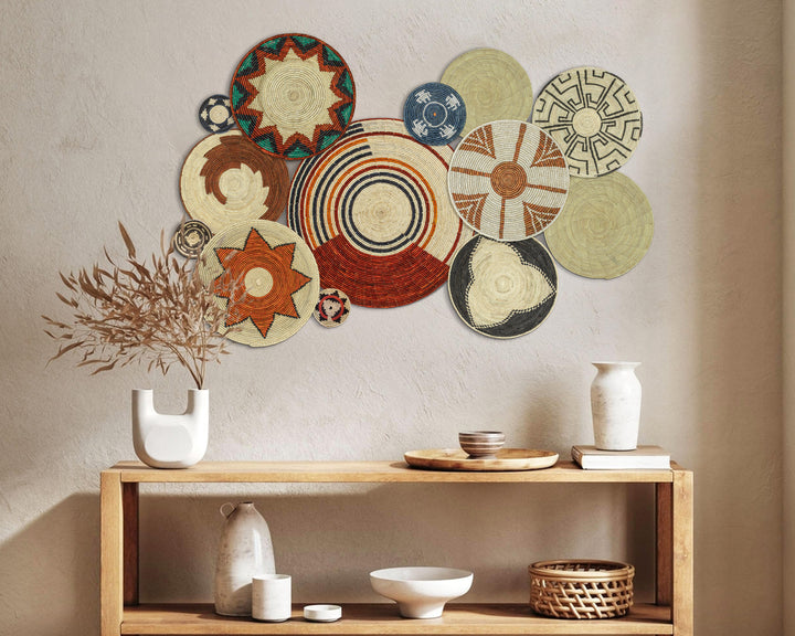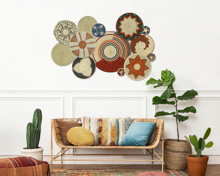 Each basket in this set is uniquely woven by skilled artisans, ensuring one-of-a-kind patterns and intricate details that add depth and character to any space. Whether you arrange them as a statement wall display, use them as tabletop decor, or incorporate them into a gallery wall, these baskets effortlessly enhance Boho, farmhouse, rustic, and modern interiors.