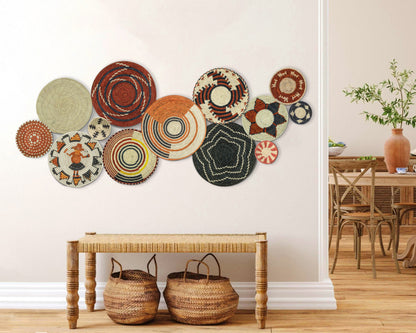 Each basket in this set is uniquely woven by skilled artisans, ensuring one-of-a-kind patterns and intricate details that add depth and character to any space. Whether you arrange them as a statement wall display, use them as tabletop decor, or incorporate them into a gallery wall, these baskets effortlessly enhance Boho, farmhouse, rustic, and modern interiors.