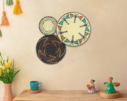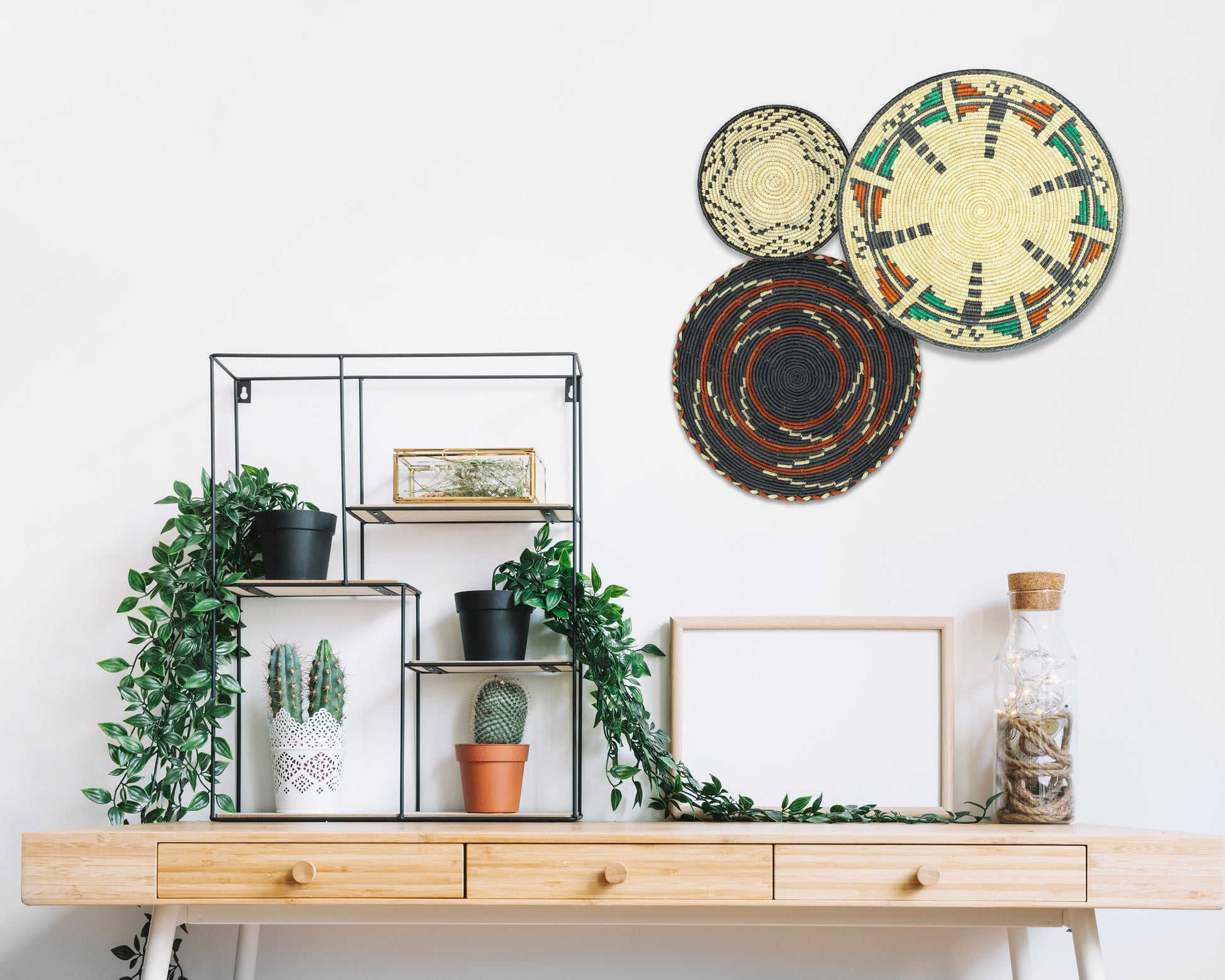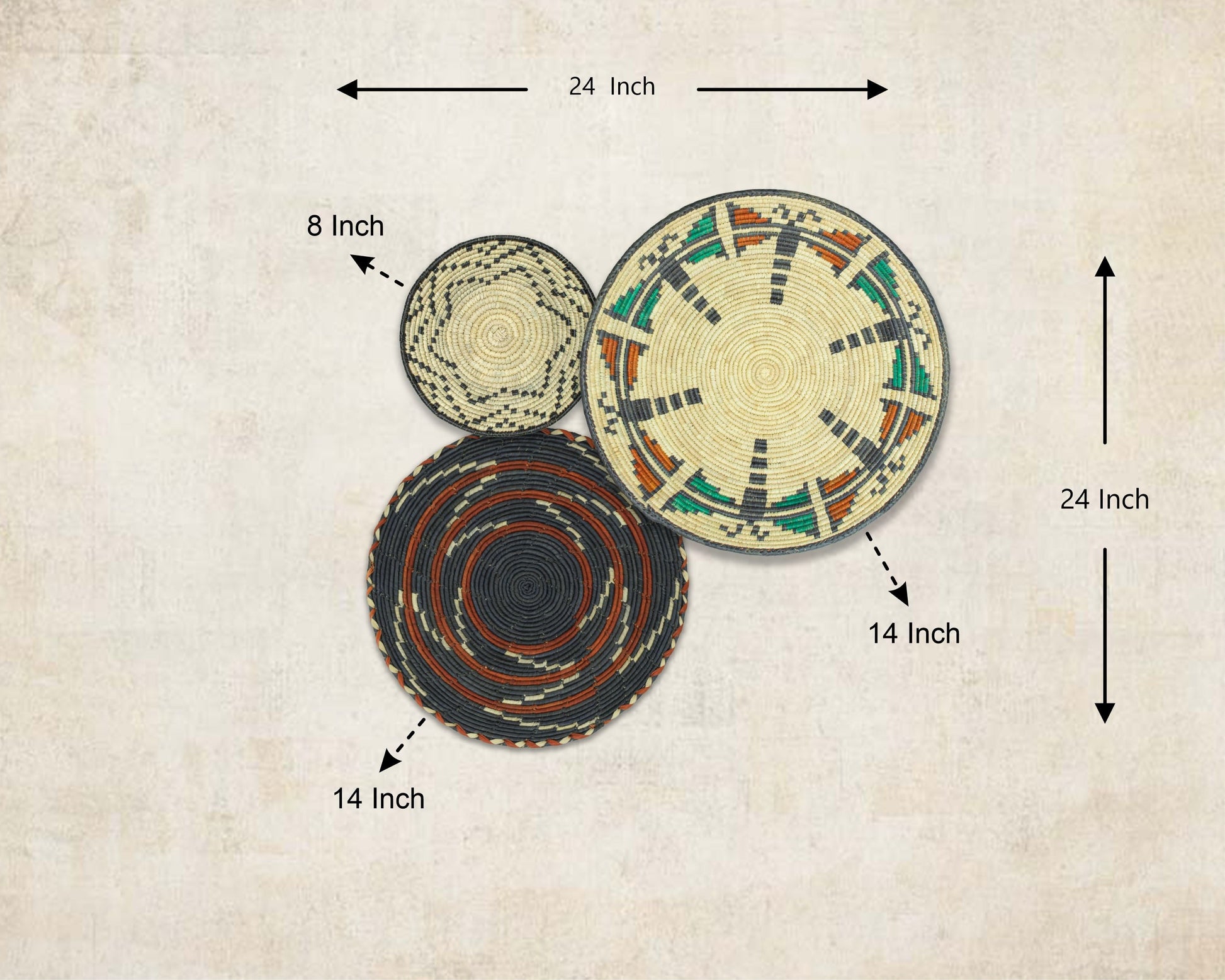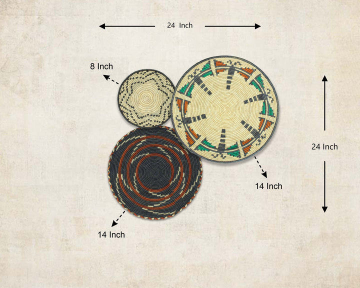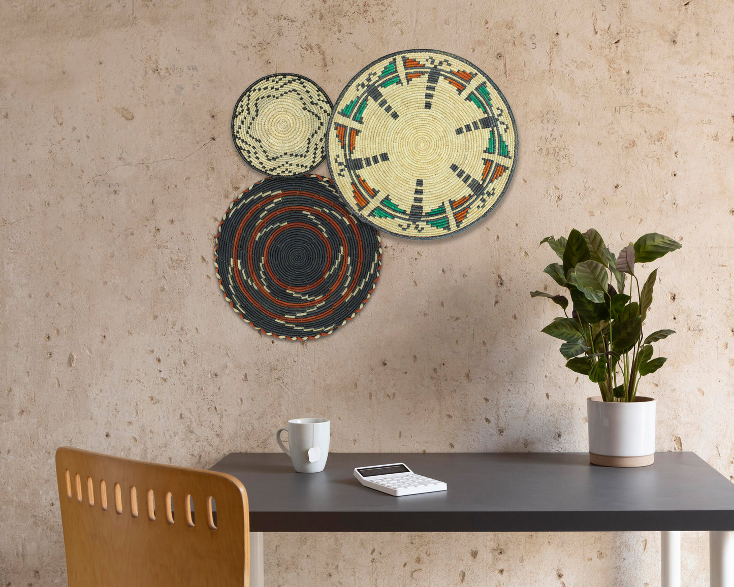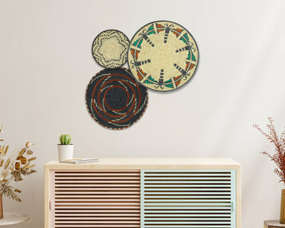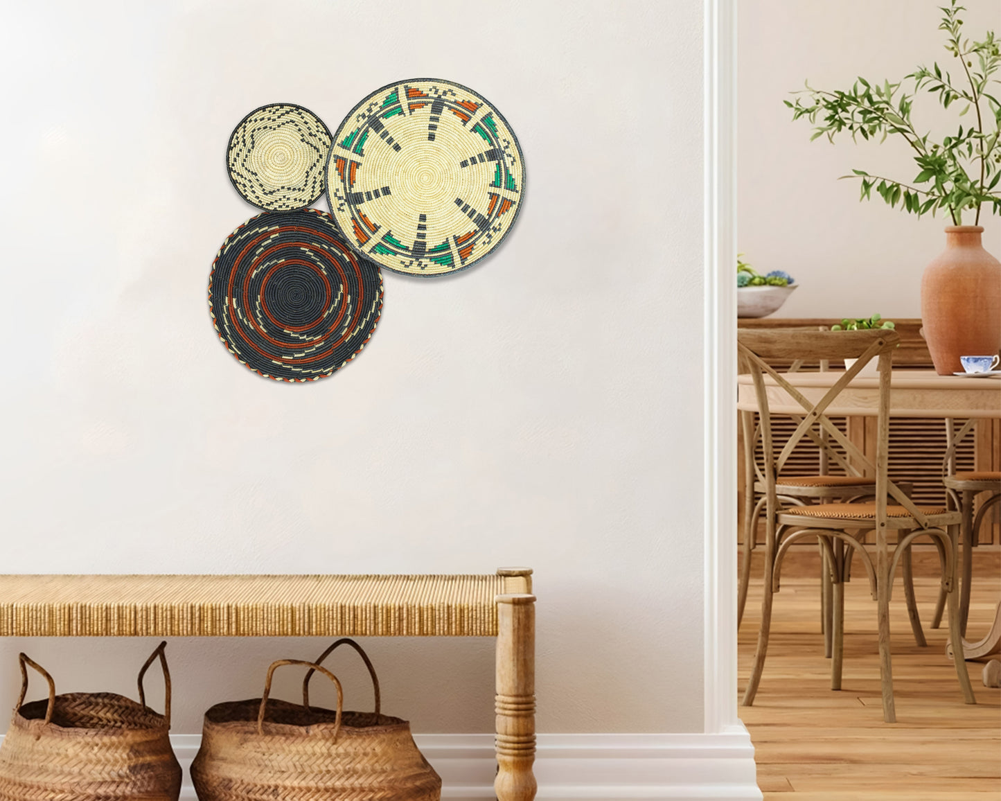 Each basket in this set is uniquely woven by skilled artisans, ensuring one-of-a-kind patterns and intricate details that add depth and character to any space. Whether you arrange them as a statement wall display, use them as tabletop decor, or incorporate them into a gallery wall, these baskets effortlessly enhance Boho, farmhouse, rustic, and modern interiors.