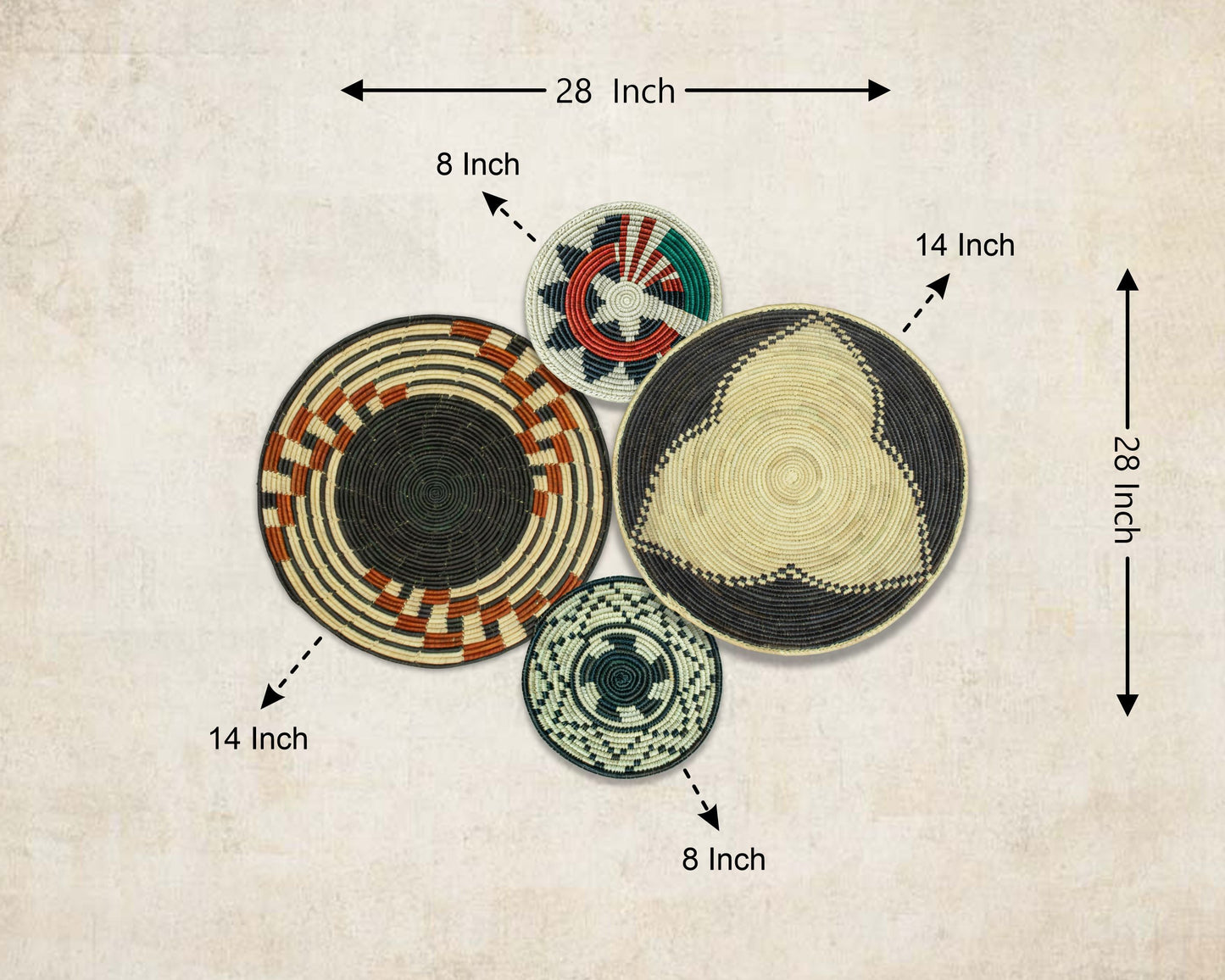 Set of 4 Handwoven wall baskets SET-232-4 N