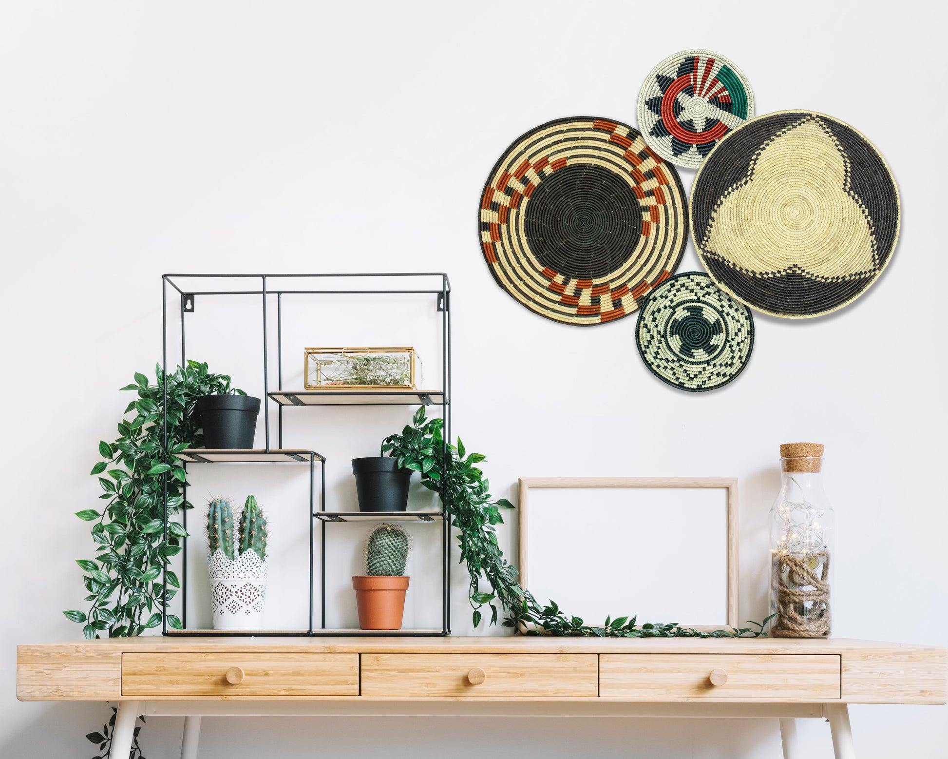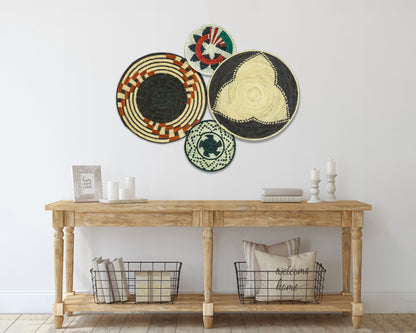 Each basket in this set is uniquely woven by skilled artisans, ensuring one-of-a-kind patterns and intricate details that add depth and character to any space. Whether you arrange them as a statement wall display, use them as tabletop decor, or incorporate them into a gallery wall, these baskets effortlessly enhance Boho, farmhouse, rustic, and modern interiors.