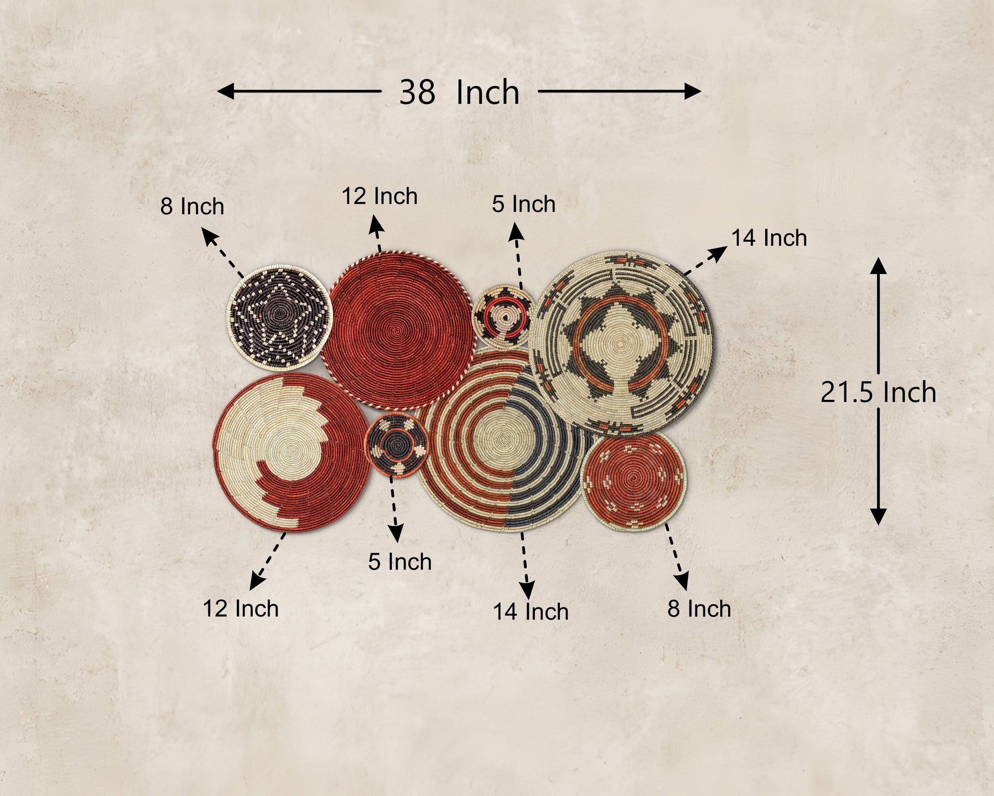 Set of 8 Handwoven wall baskets SET-241-8 N