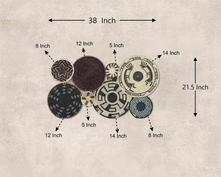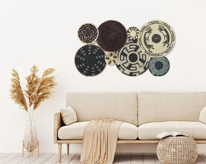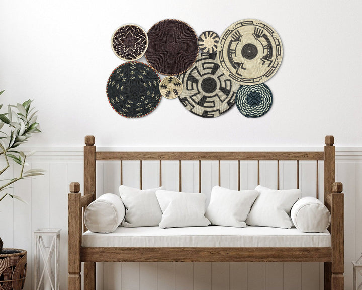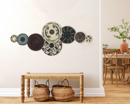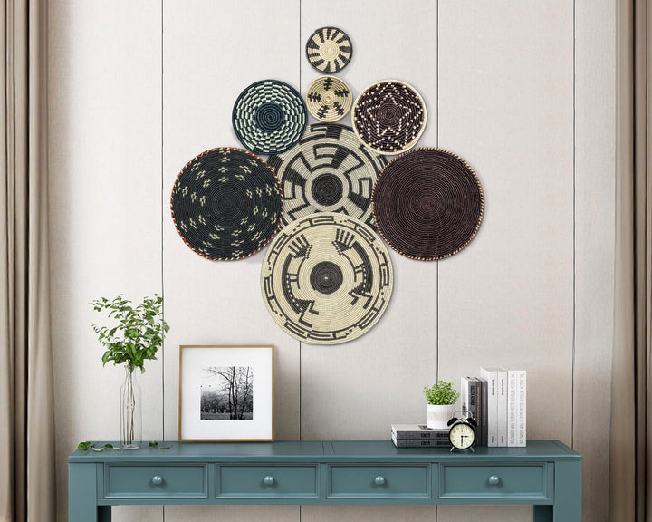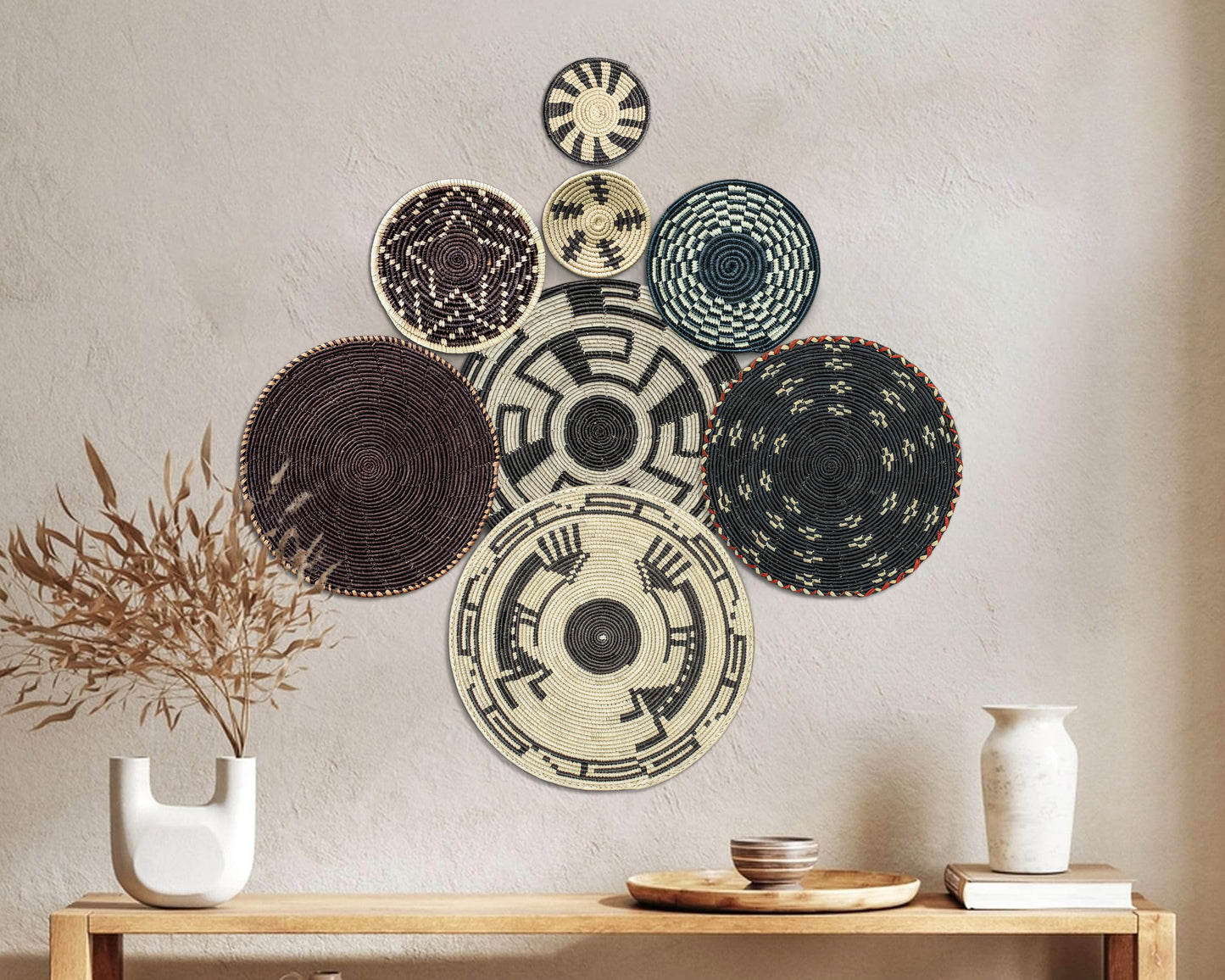 Each basket in this set is uniquely woven by skilled artisans, ensuring one-of-a-kind patterns and intricate details that add depth and character to any space. Whether you arrange them as a statement wall display, use them as tabletop decor, or incorporate them into a gallery wall, these baskets effortlessly enhance Boho, farmhouse, rustic, and modern interiors.