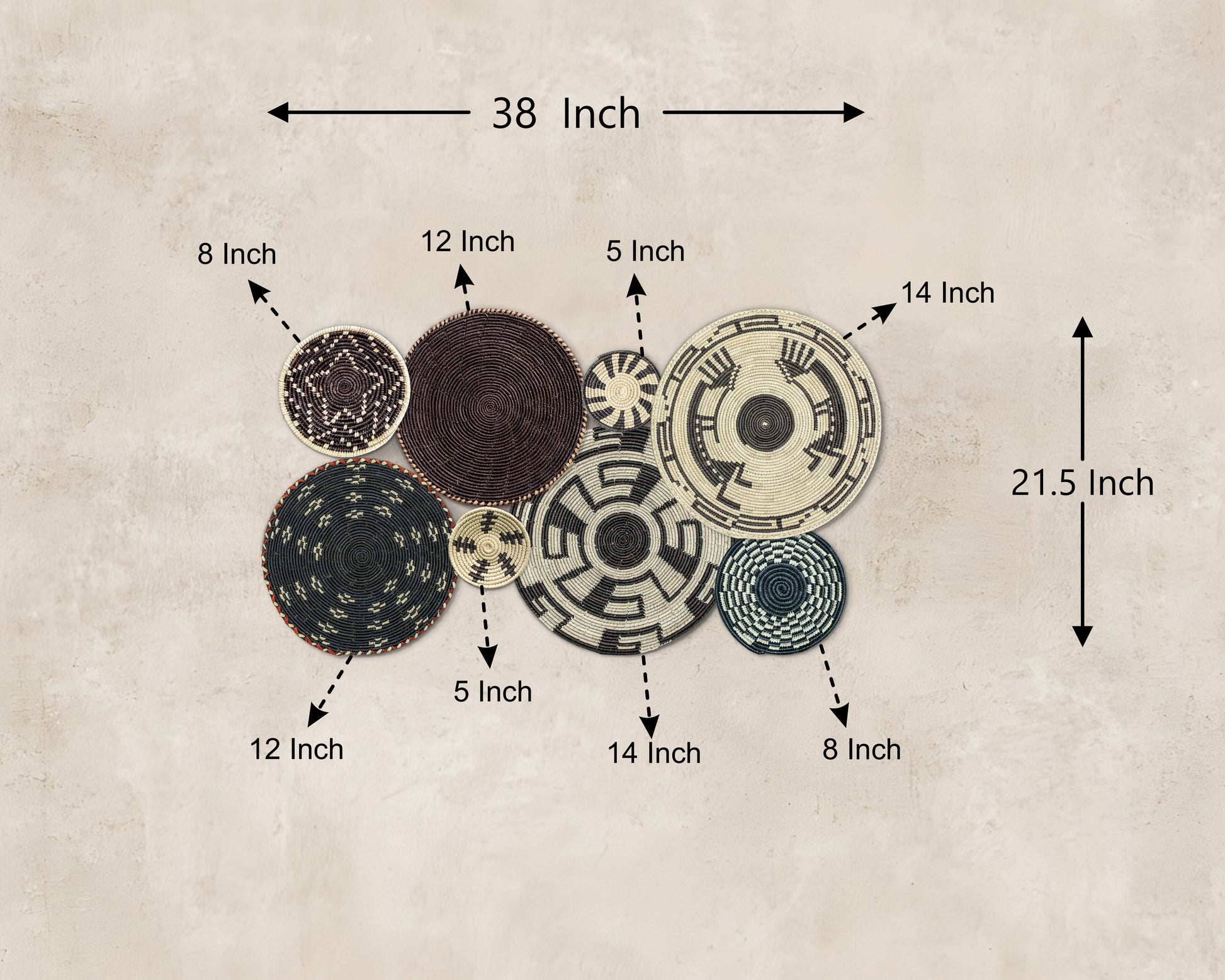 Set of 8 Handwoven wall baskets SET-243-8 N