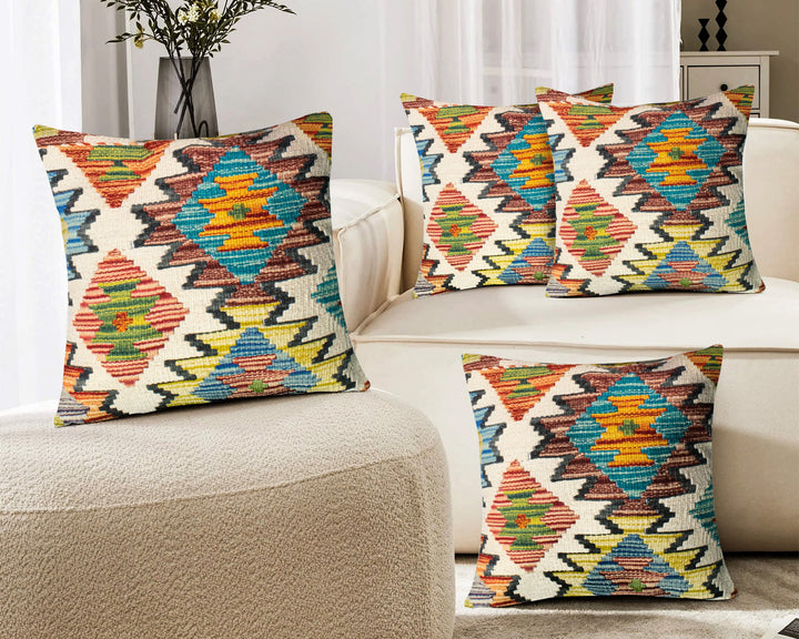 A set of 4 Handwoven Kilim Pillow Covers (📌 Cushion insert not included