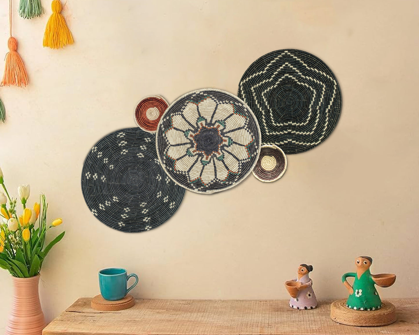Set of 5 Handwoven wall baskets SET-62-5 N
