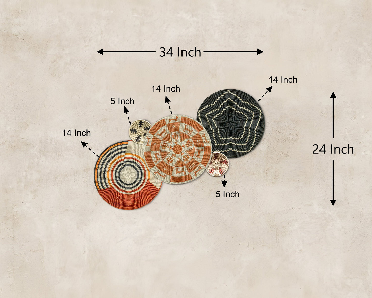Set of 5 Handwoven wall baskets SET-63-5 N
