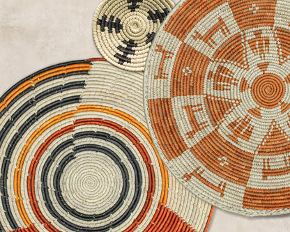 Each basket in this set is uniquely woven by skilled artisans, ensuring one-of-a-kind patterns and intricate details that add depth and character to any space. Whether you arrange them as a statement wall display, use them as tabletop decor, or incorporate them into a gallery wall, these baskets effortlessly enhance Boho, farmhouse, rustic, and modern interiors.