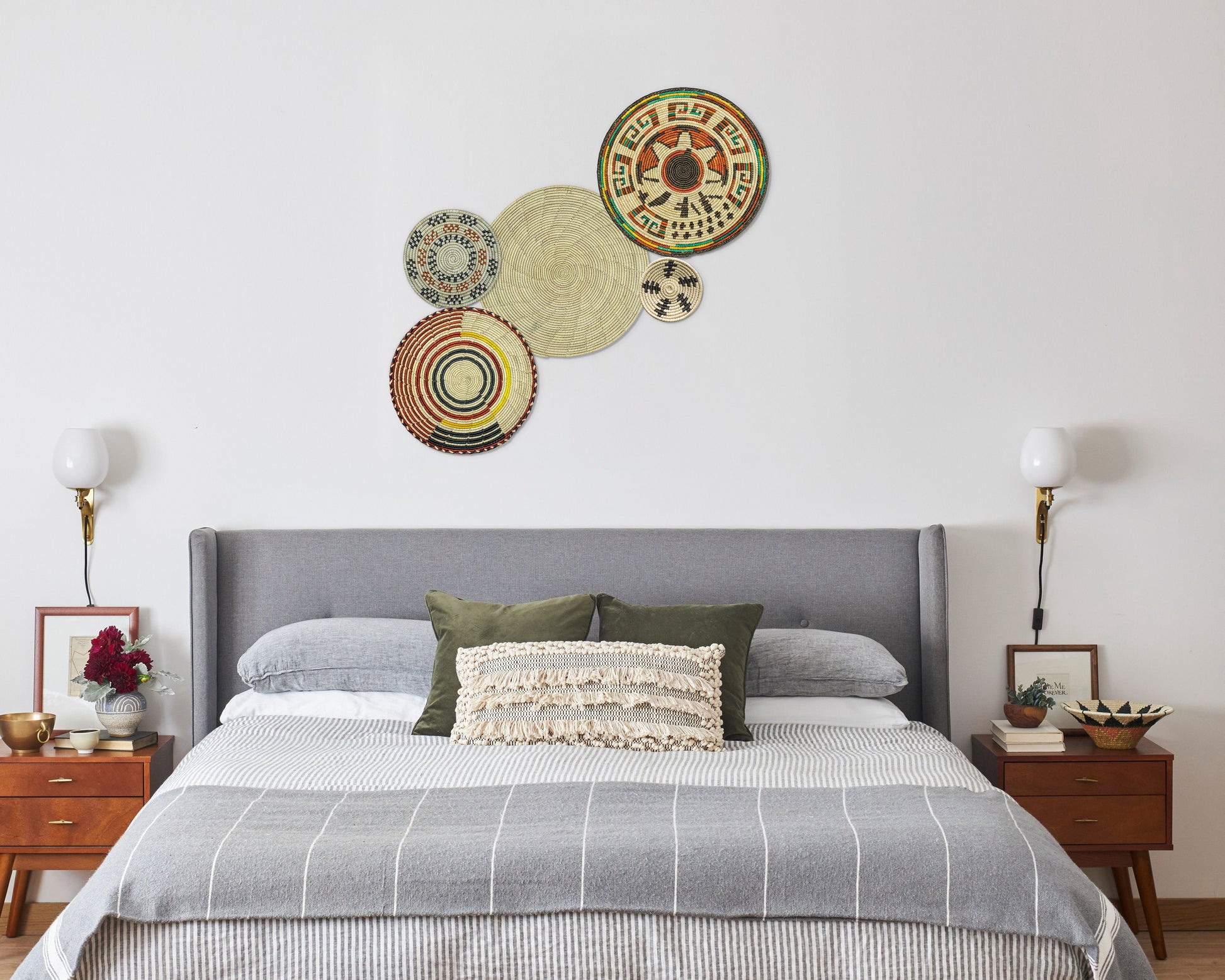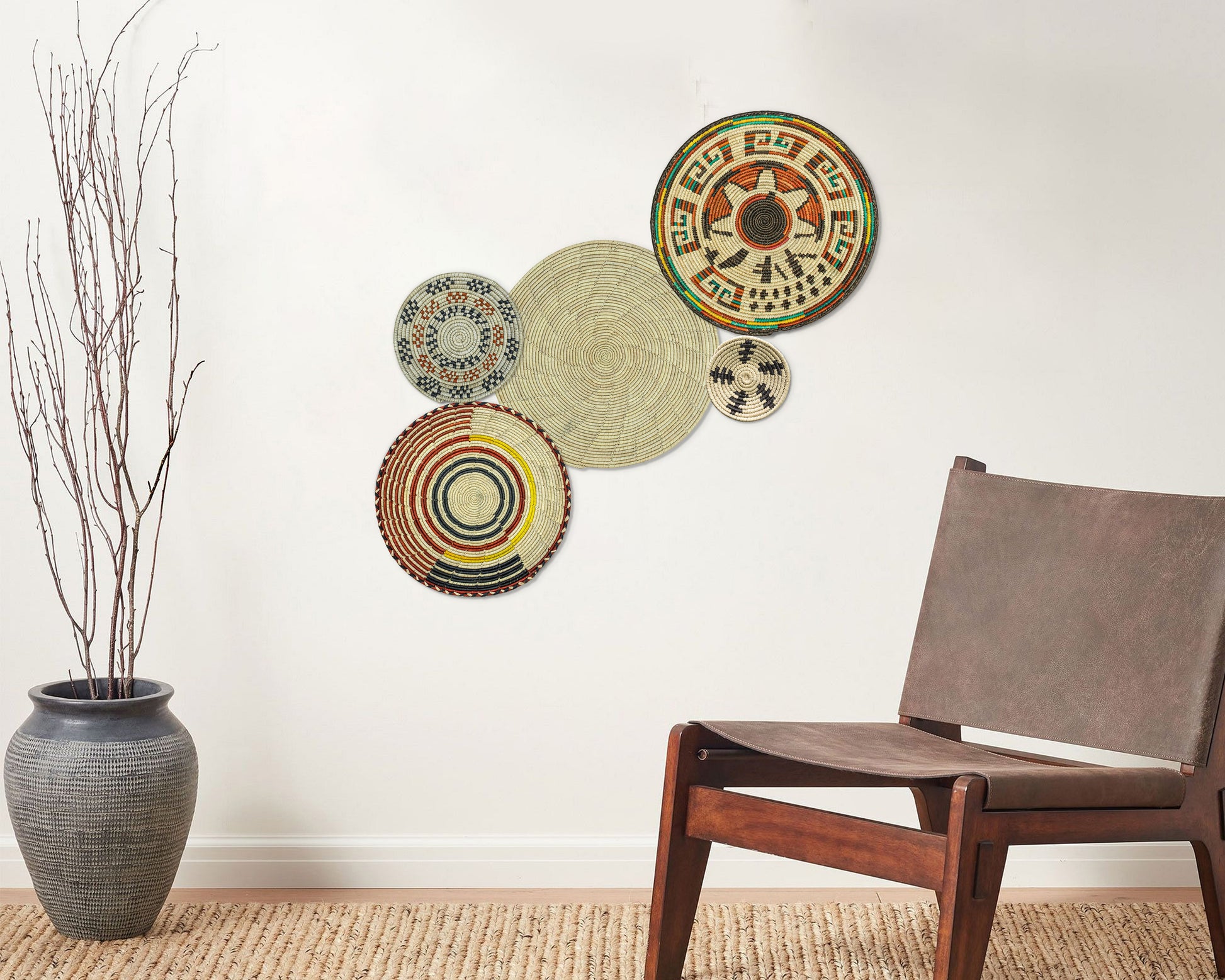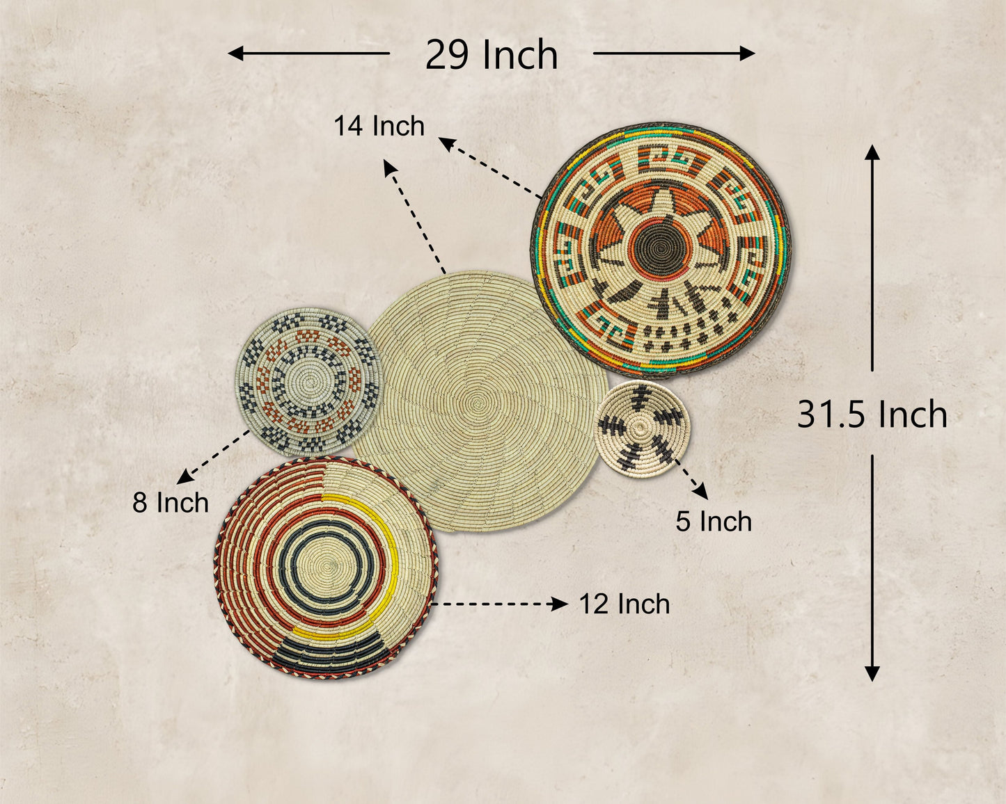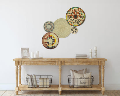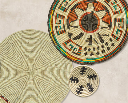 Each basket in this set is uniquely woven by skilled artisans, ensuring one-of-a-kind patterns and intricate details that add depth and character to any space. Whether you arrange them as a statement wall display, use them as tabletop decor, or incorporate them into a gallery wall, these baskets effortlessly enhance Boho, farmhouse, rustic, and modern interiors.