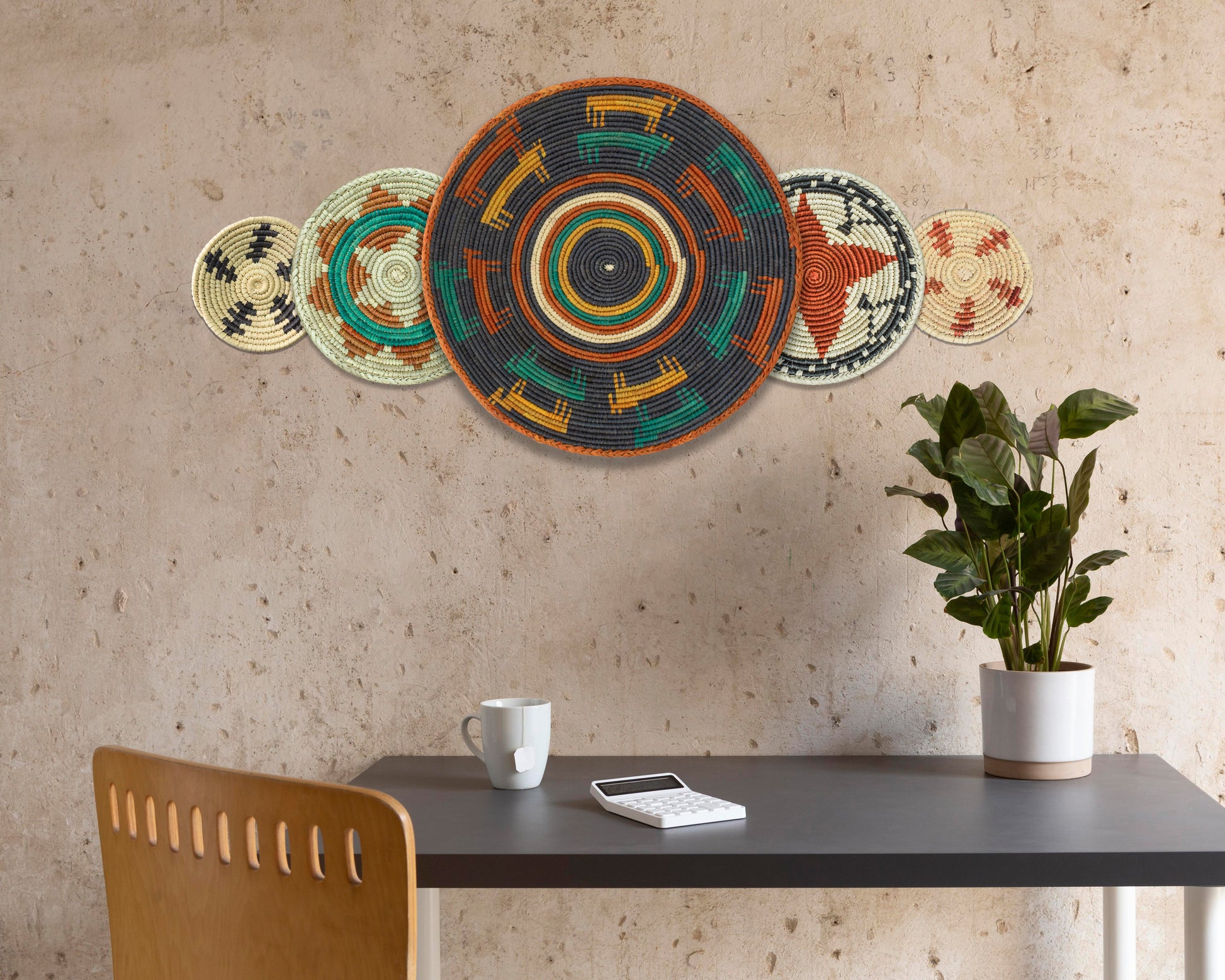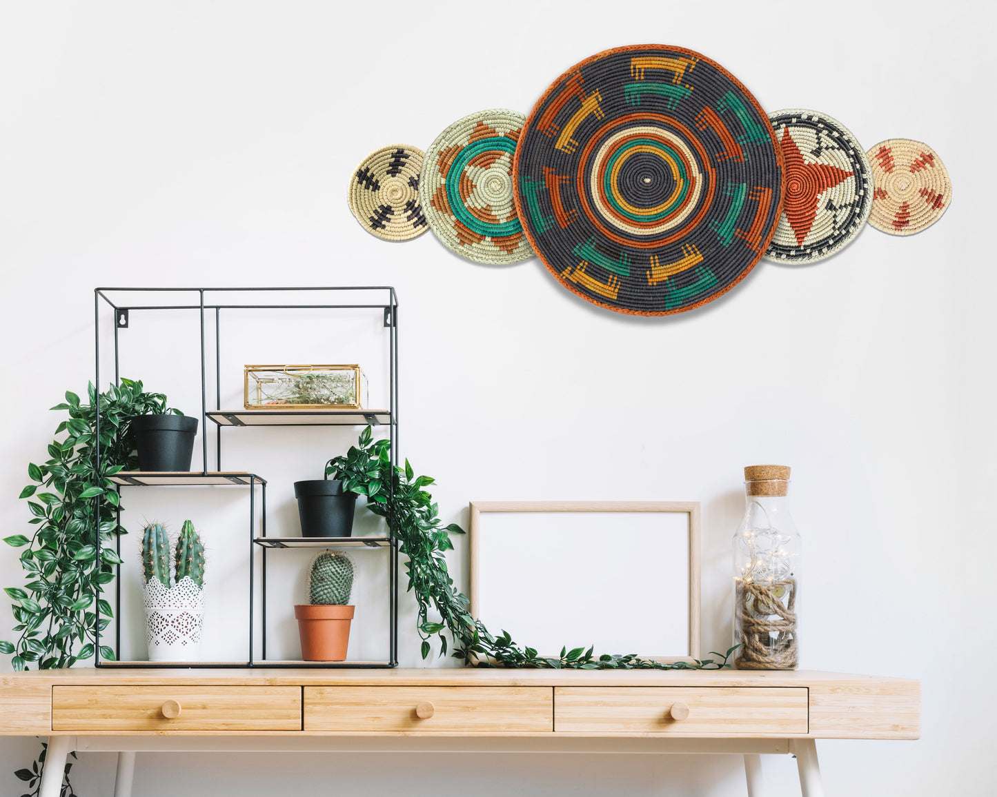 Each basket in this set is uniquely woven by skilled artisans, ensuring one-of-a-kind patterns and intricate details that add depth and character to any space. Whether you arrange them as a statement wall display, use them as tabletop decor, or incorporate them into a gallery wall, these baskets effortlessly enhance Boho, farmhouse, rustic, and modern interiors.