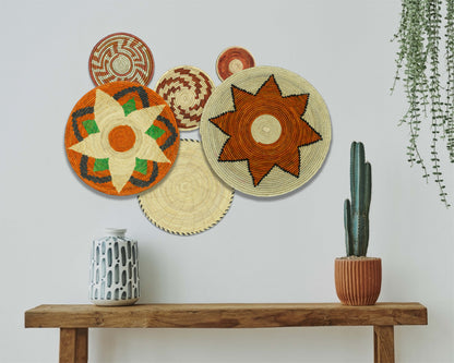 Each basket in this set is uniquely woven by skilled artisans, ensuring one-of-a-kind patterns and intricate details that add depth and character to any space. Whether you arrange them as a statement wall display, use them as tabletop decor, or incorporate them into a gallery wall, these baskets effortlessly enhance Boho, farmhouse, rustic, and modern interiors.