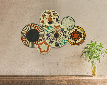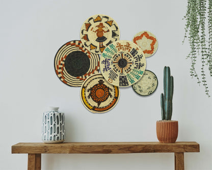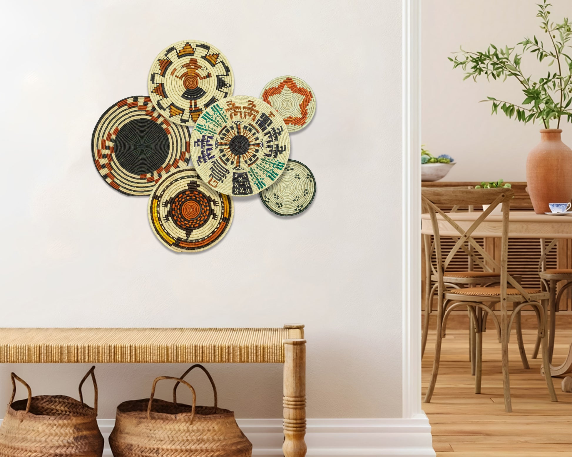 Each basket in this set is uniquely woven by skilled artisans, ensuring one-of-a-kind patterns and intricate details that add depth and character to any space. Whether you arrange them as a statement wall display, use them as tabletop decor, or incorporate them into a gallery wall, these baskets effortlessly enhance Boho, farmhouse, rustic, and modern interiors.