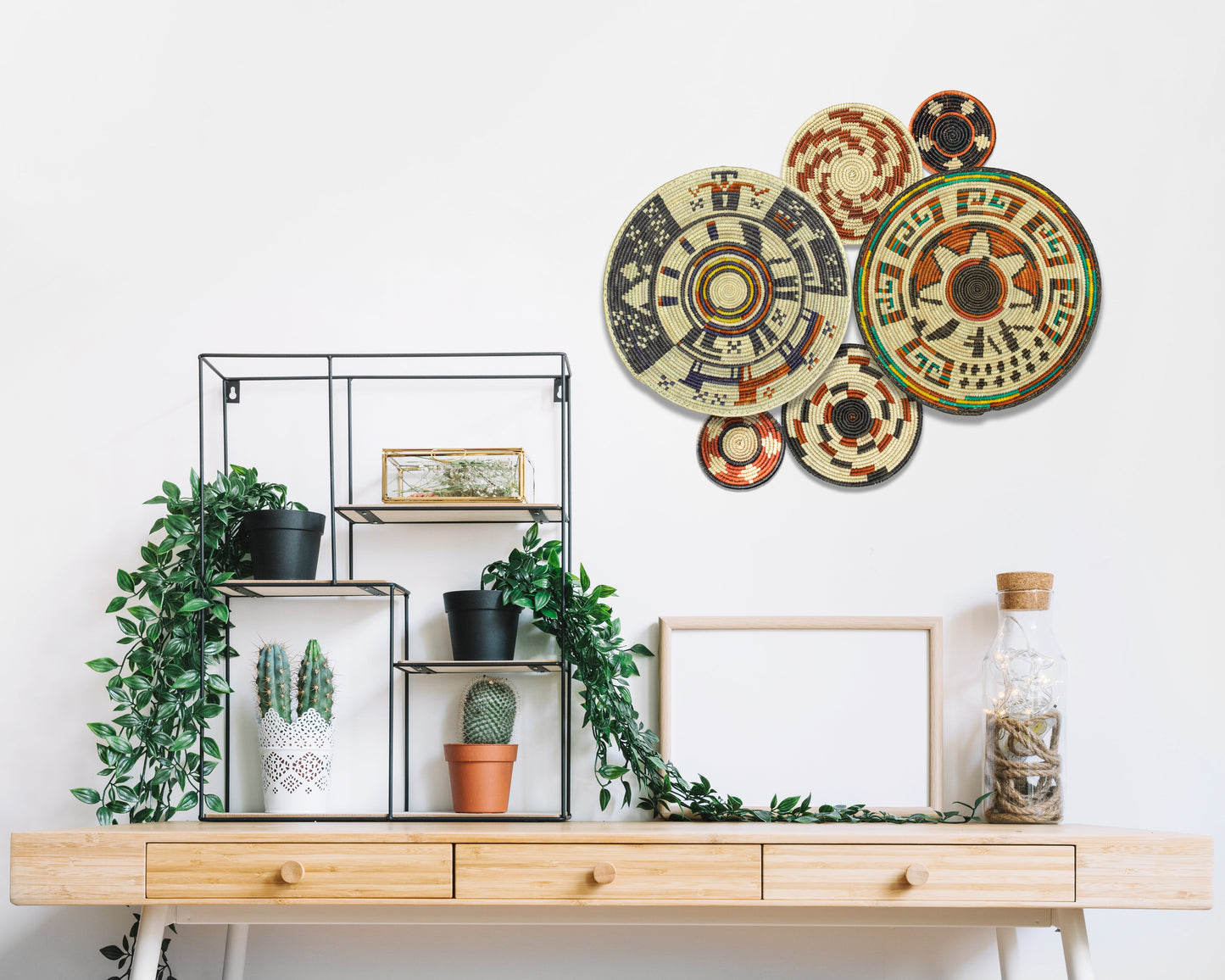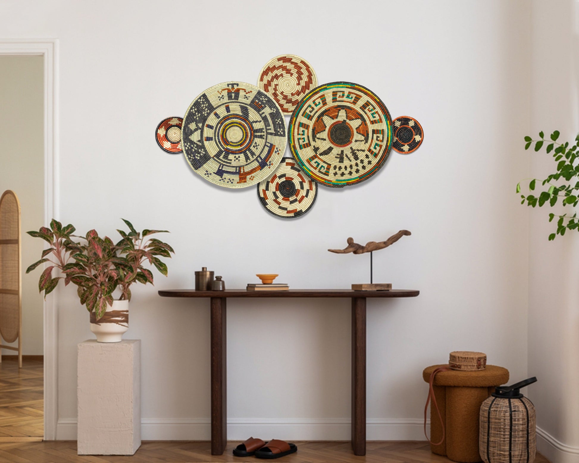 Each basket in this set is uniquely woven by skilled artisans, ensuring one-of-a-kind patterns and intricate details that add depth and character to any space. Whether you arrange them as a statement wall display, use them as tabletop decor, or incorporate them into a gallery wall, these baskets effortlessly enhance Boho, farmhouse, rustic, and modern interiors.