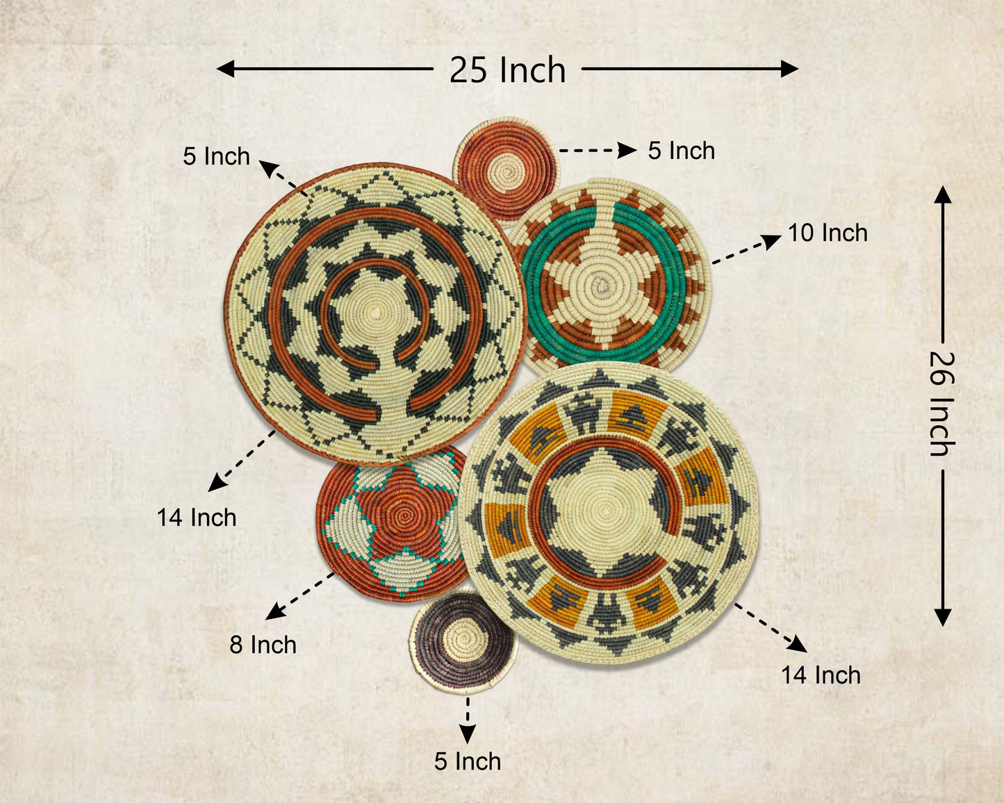 Set of 6 Handwoven wall baskets SET-287-6 N
