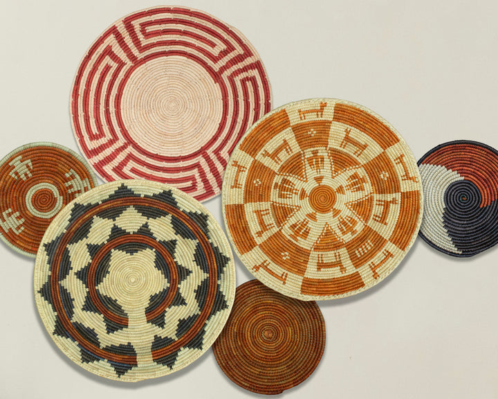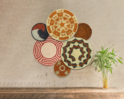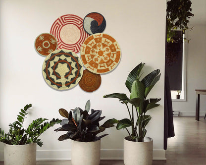Each basket in this set is uniquely woven by skilled artisans, ensuring one-of-a-kind patterns and intricate details that add depth and character to any space. Whether you arrange them as a statement wall display, use them as tabletop decor, or incorporate them into a gallery wall, these baskets effortlessly enhance Boho, farmhouse, rustic, and modern interiors.