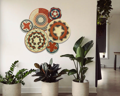 Each basket in this set is uniquely woven by skilled artisans, ensuring one-of-a-kind patterns and intricate details that add depth and character to any space. Whether you arrange them as a statement wall display, use them as tabletop decor, or incorporate them into a gallery wall, these baskets effortlessly enhance Boho, farmhouse, rustic, and modern interiors.