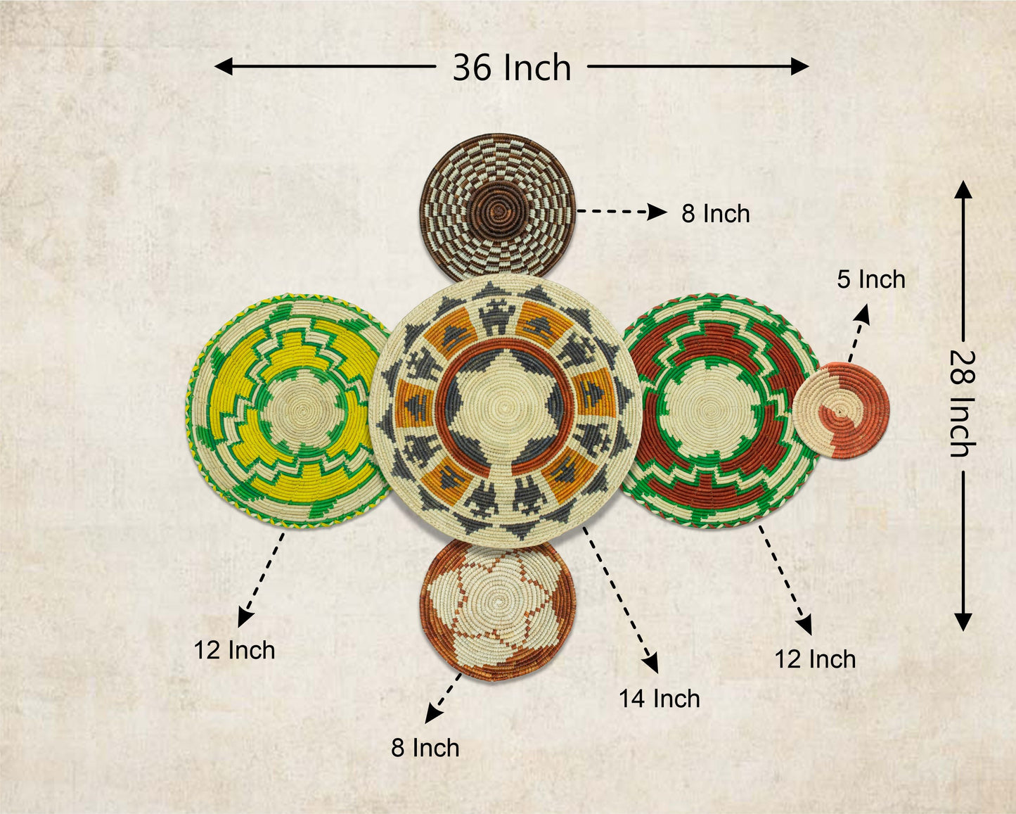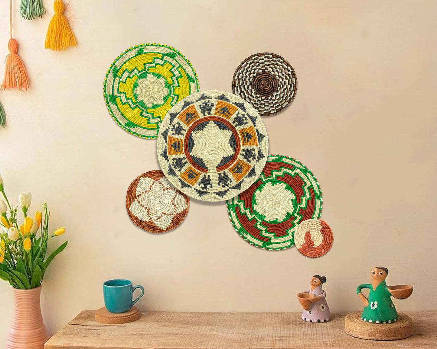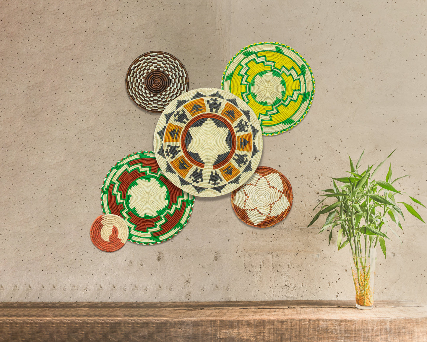 Set of 6 Handwoven wall baskets SET-372-6 N