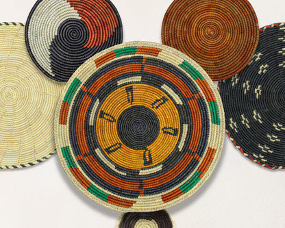 Each basket in this set is uniquely woven by skilled artisans, ensuring one-of-a-kind patterns and intricate details that add depth and character to any space. Whether you arrange them as a statement wall display, use them as tabletop decor, or incorporate them into a gallery wall, these baskets effortlessly enhance Boho, farmhouse, rustic, and modern interiors.