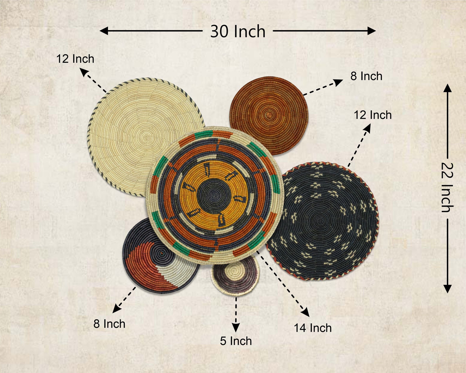 Set of 6 Handwoven wall baskets SET-386-6 N