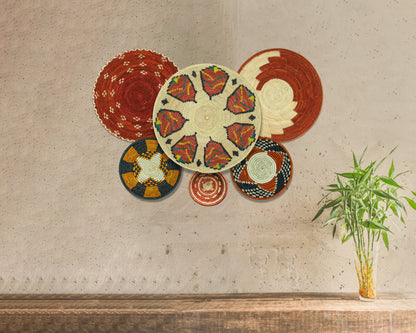 Each basket in this set is uniquely woven by skilled artisans, ensuring one-of-a-kind patterns and intricate details that add depth and character to any space. Whether you arrange them as a statement wall display, use them as tabletop decor, or incorporate them into a gallery wall, these baskets effortlessly enhance Boho, farmhouse, rustic, and modern interiors.