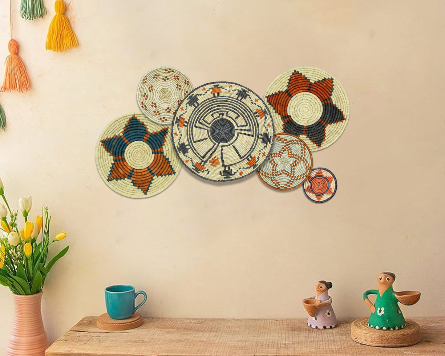 Set of 6 Handwoven wall baskets SET-389-6 N
