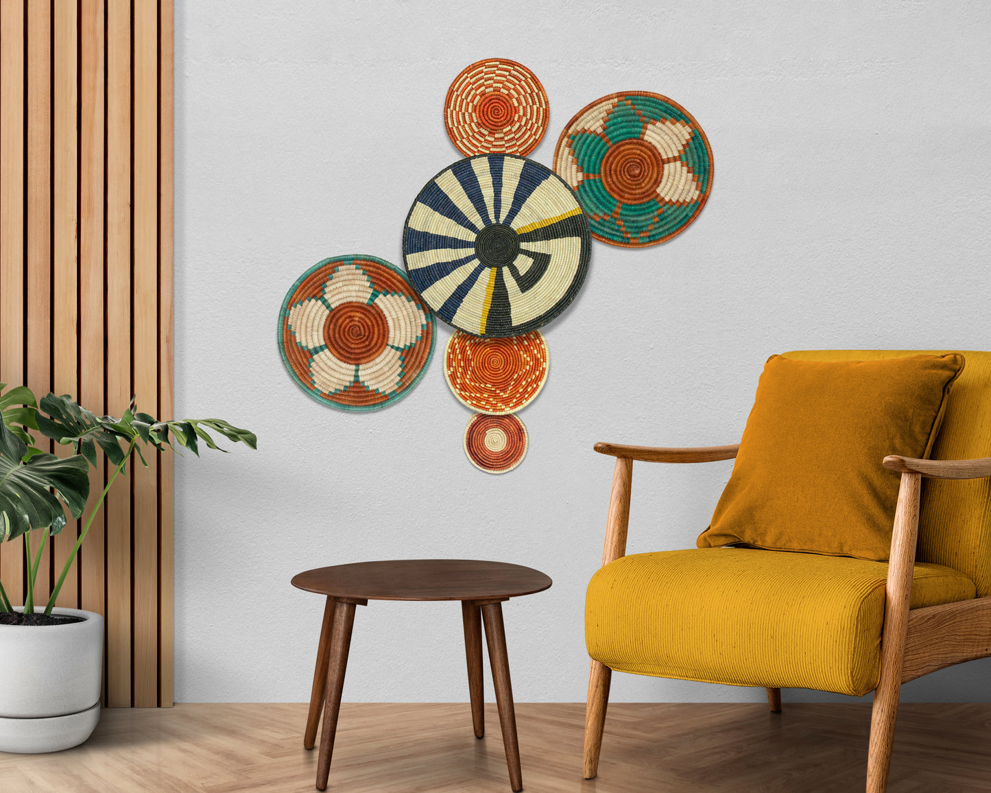 Set of 6 Handwoven wall baskets SET-392-6 N