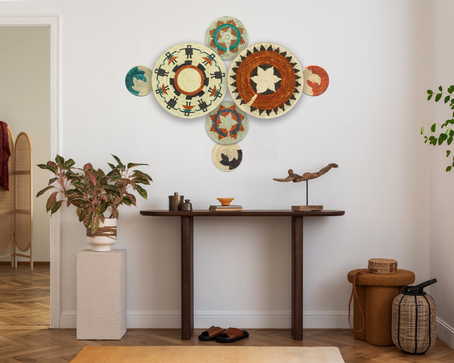 Elevate your home decor with the warmth, texture, and artisanal craftsmanship of our Handwoven Wall Basket Set. Designed to bring boho elegance and rustic charm, these stunning baskets are crafted from natural palm leaves, Sea grass, and plant-based dyes, making them an eco-friendly and timeless decor choice.