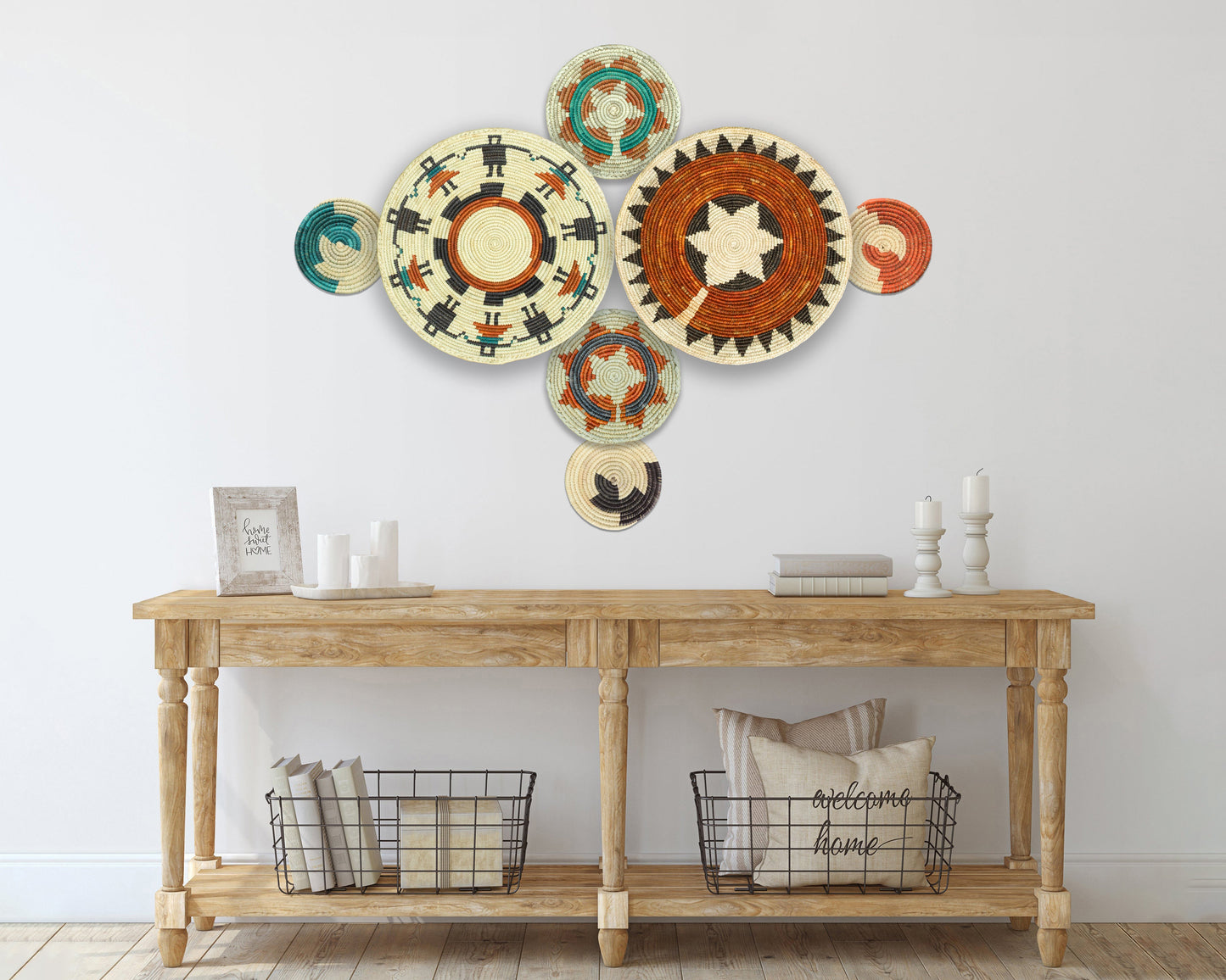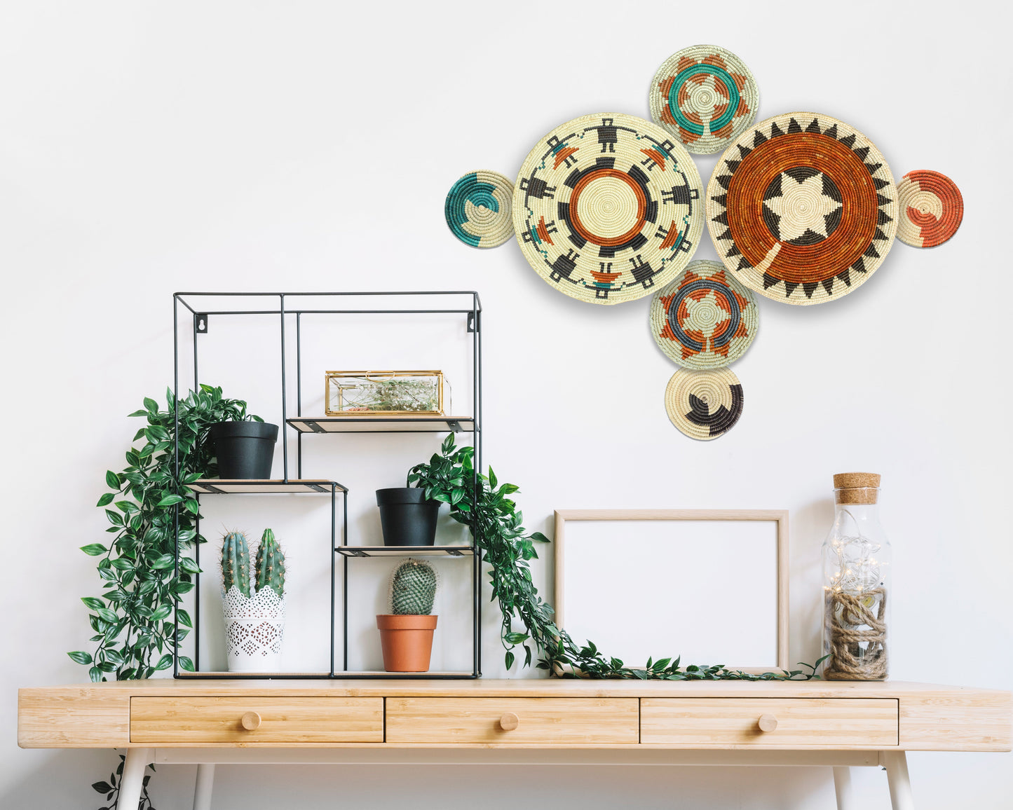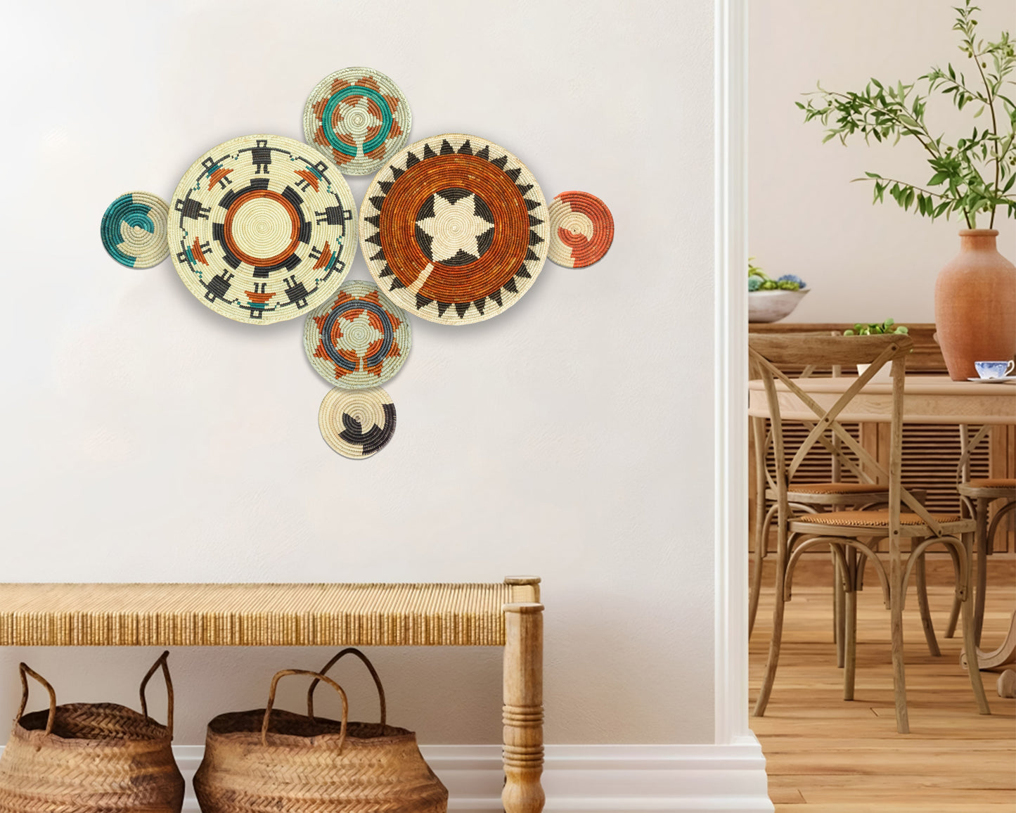 Each basket in this set is uniquely woven by skilled artisans, ensuring one-of-a-kind patterns and intricate details that add depth and character to any space. Whether you arrange them as a statement wall display, use them as tabletop decor, or incorporate them into a gallery wall, these baskets effortlessly enhance Boho, farmhouse, rustic, and modern interiors.