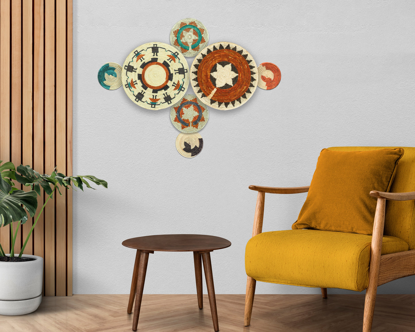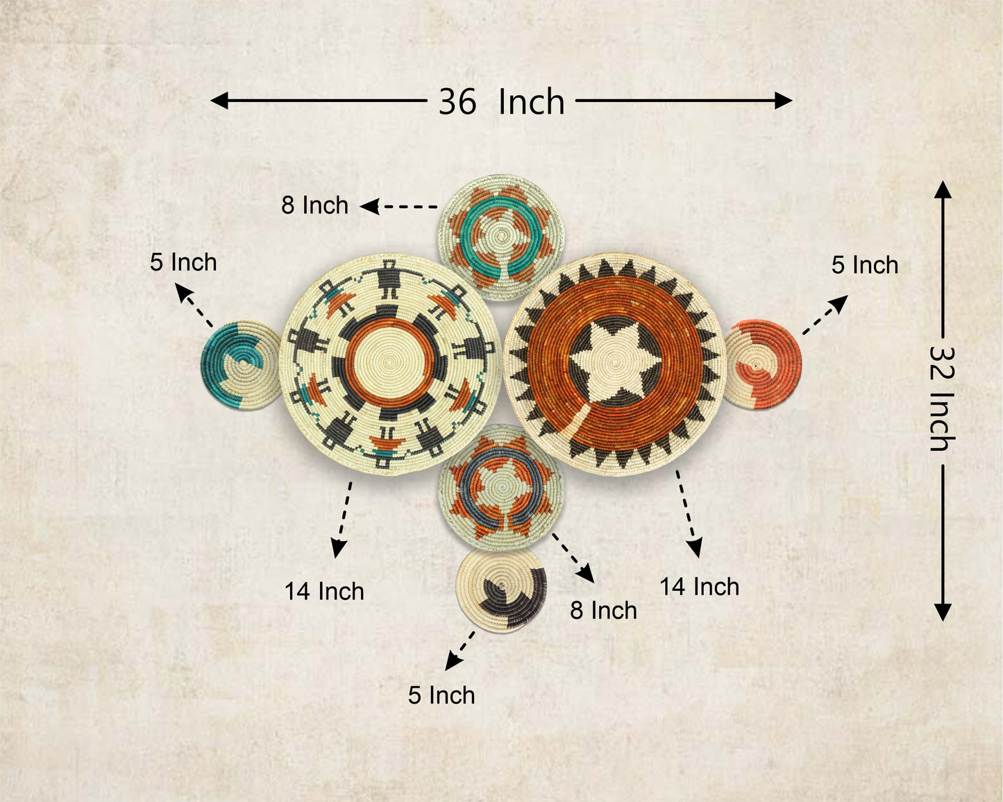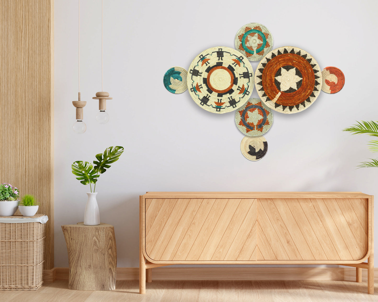 Set of 7 Handwoven wall baskets Set 301-7-N