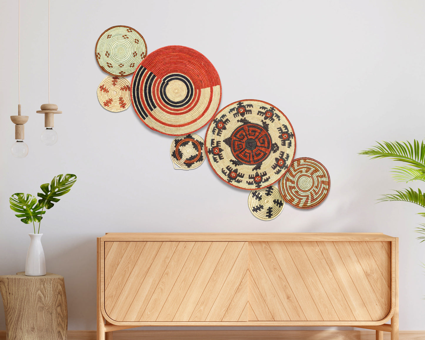 Set of 7 Handwoven wall baskets Set 303-7-N
