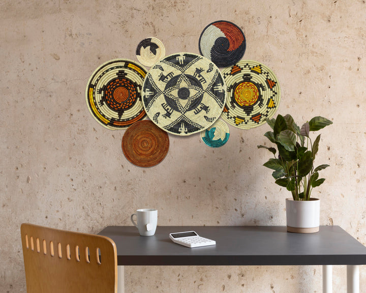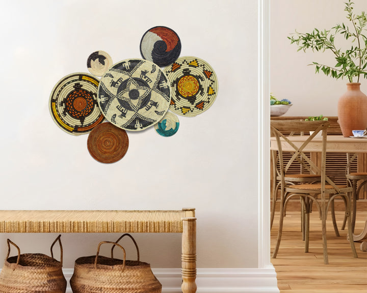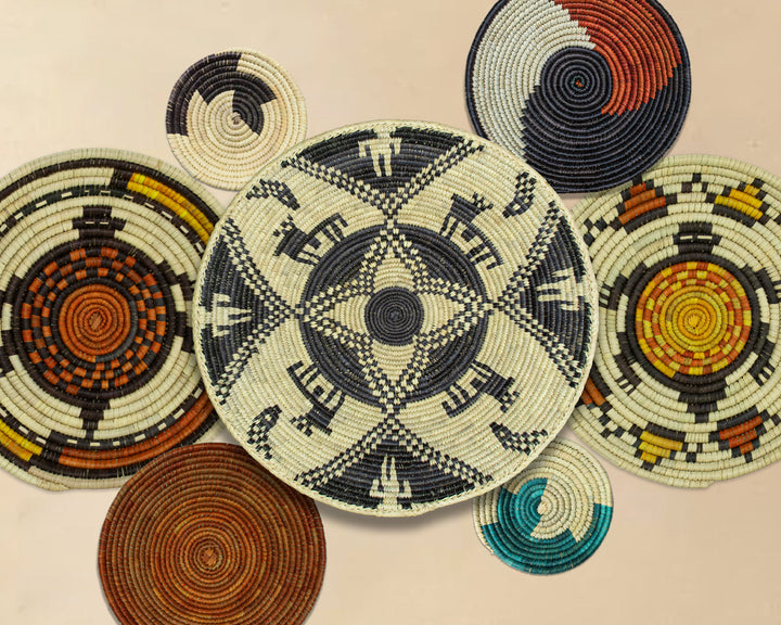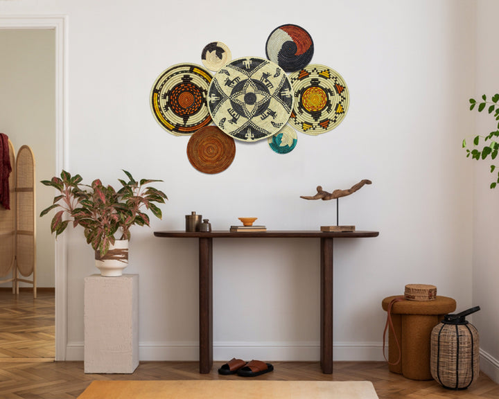 Each basket in this set is uniquely woven by skilled artisans, ensuring one-of-a-kind patterns and intricate details that add depth and character to any space. Whether you arrange them as a statement wall display, use them as tabletop decor, or incorporate them into a gallery wall, these baskets effortlessly enhance Boho, farmhouse, rustic, and modern interiors.