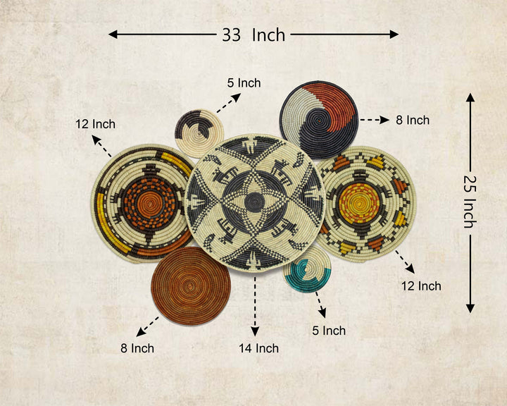 Set of 7 Handwoven wall baskets Set 304-7-N