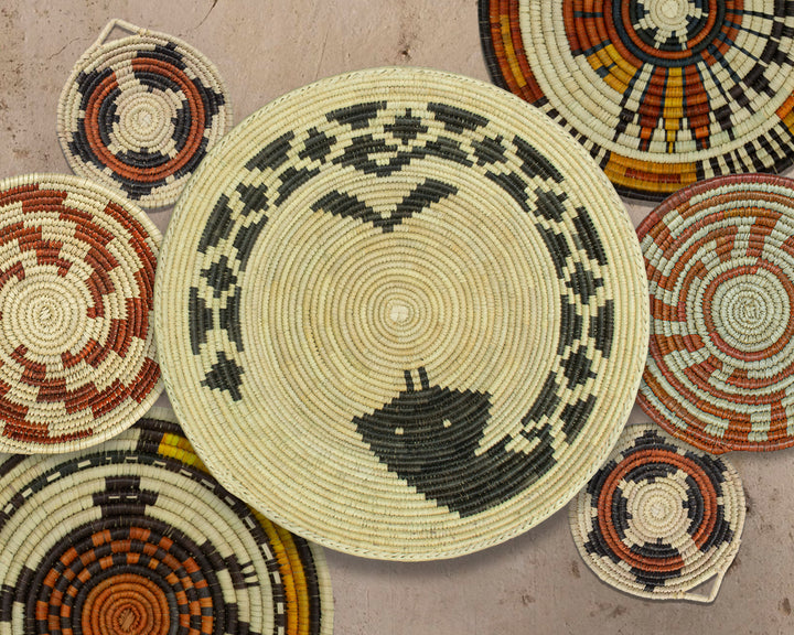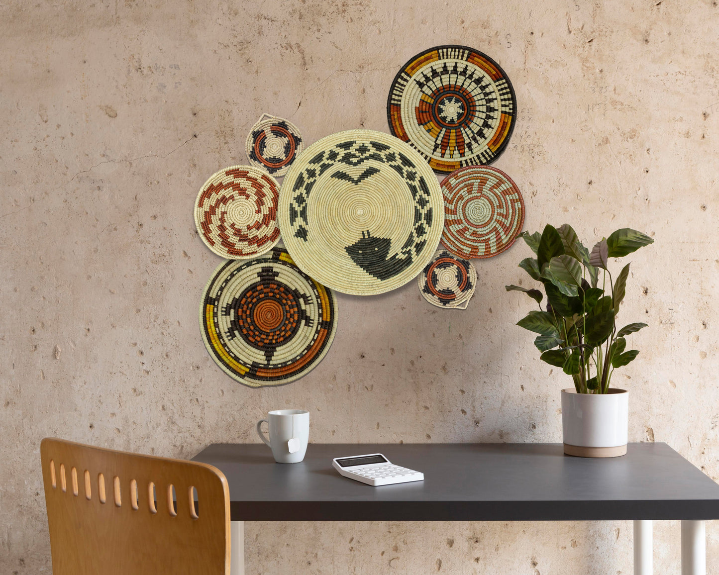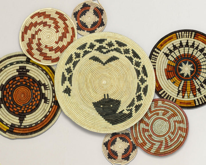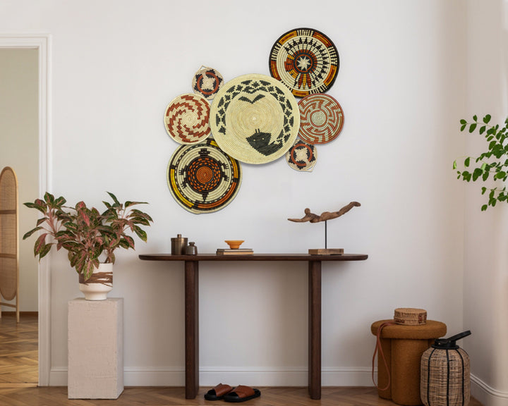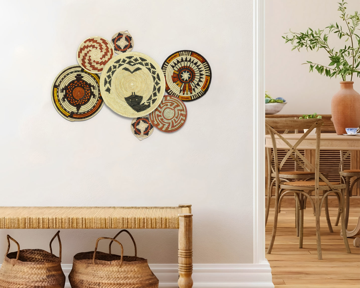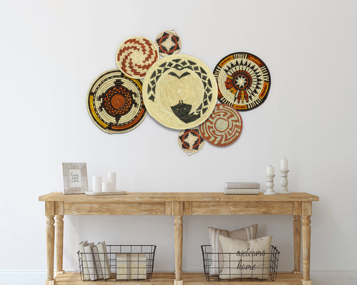 Each basket in this set is uniquely woven by skilled artisans, ensuring one-of-a-kind patterns and intricate details that add depth and character to any space. Whether you arrange them as a statement wall display, use them as tabletop decor, or incorporate them into a gallery wall, these baskets effortlessly enhance Boho, farmhouse, rustic, and modern interiors.