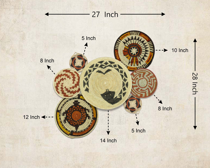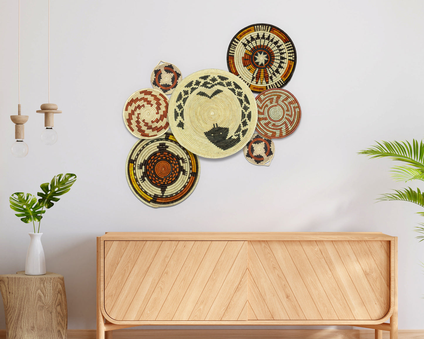 Set of 7 Handwoven wall baskets Set 305-7-N