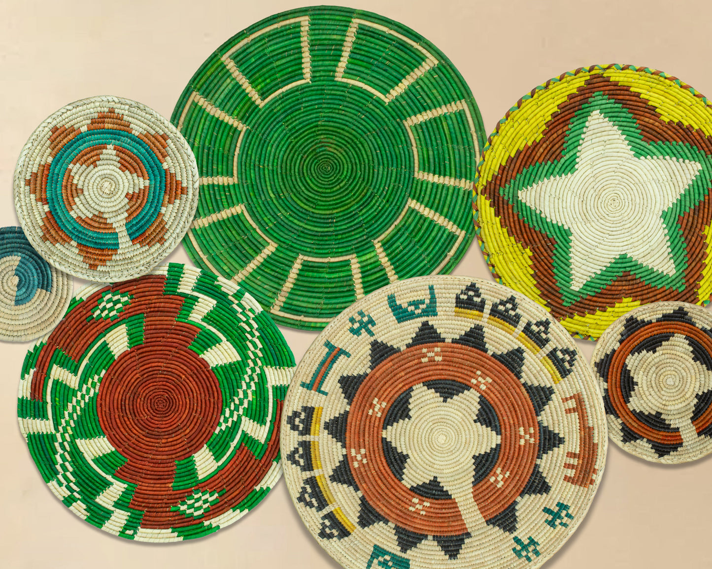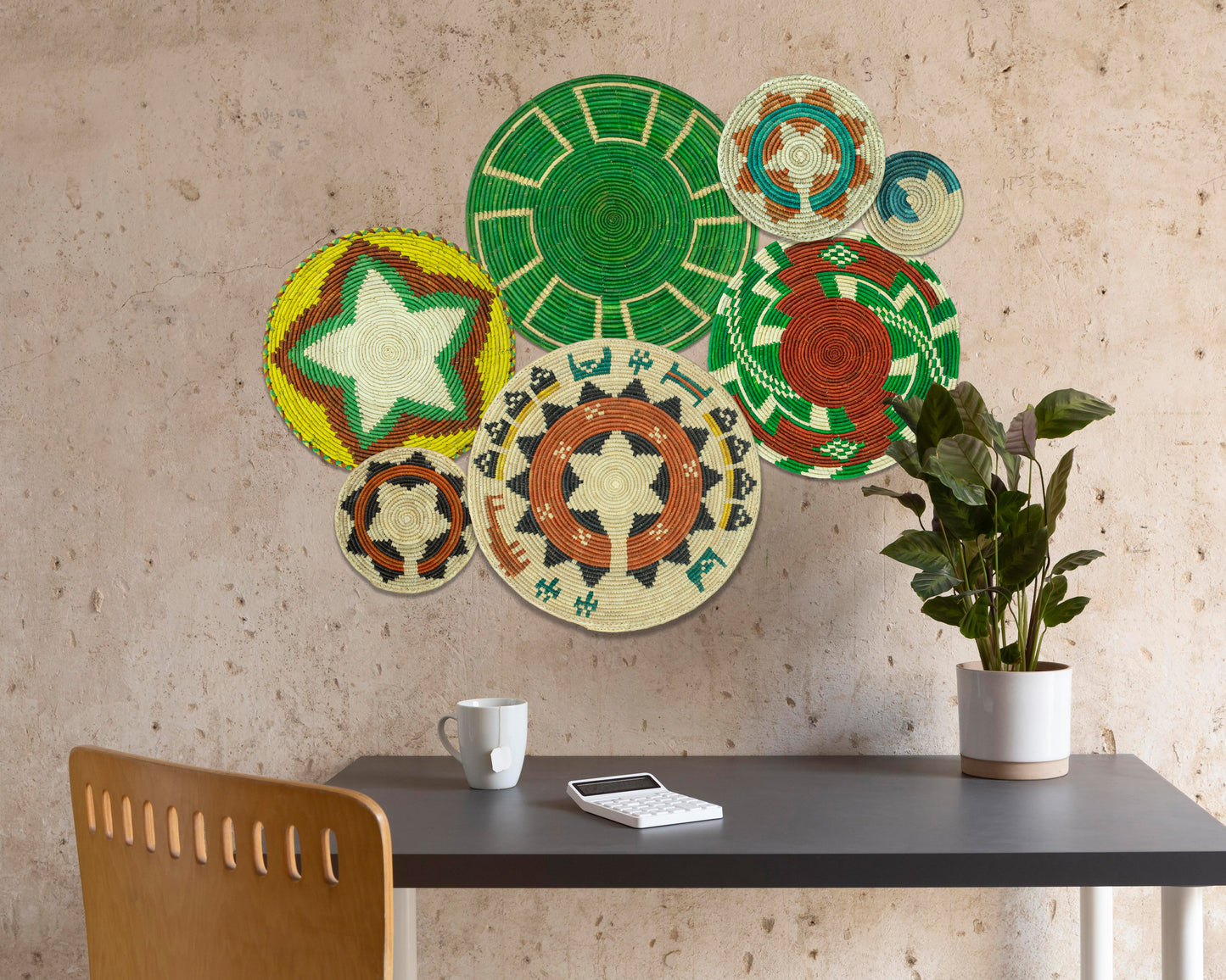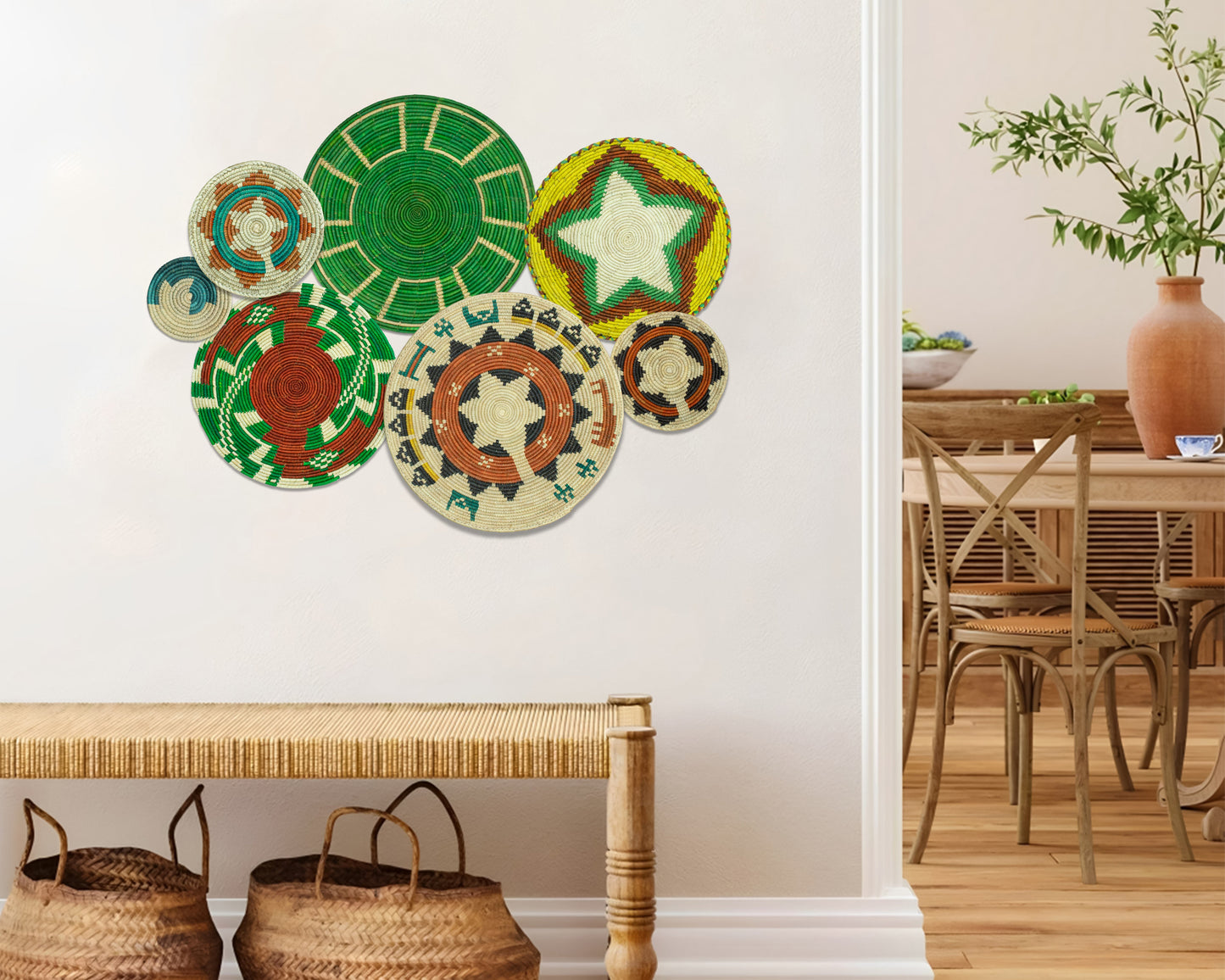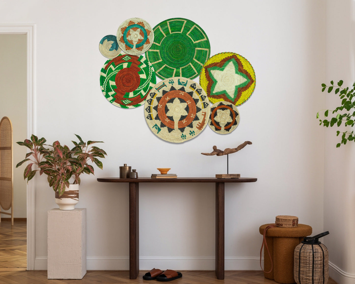 Each basket in this set is uniquely woven by skilled artisans, ensuring one-of-a-kind patterns and intricate details that add depth and character to any space. Whether you arrange them as a statement wall display, use them as tabletop decor, or incorporate them into a gallery wall, these baskets effortlessly enhance Boho, farmhouse, rustic, and modern interiors.