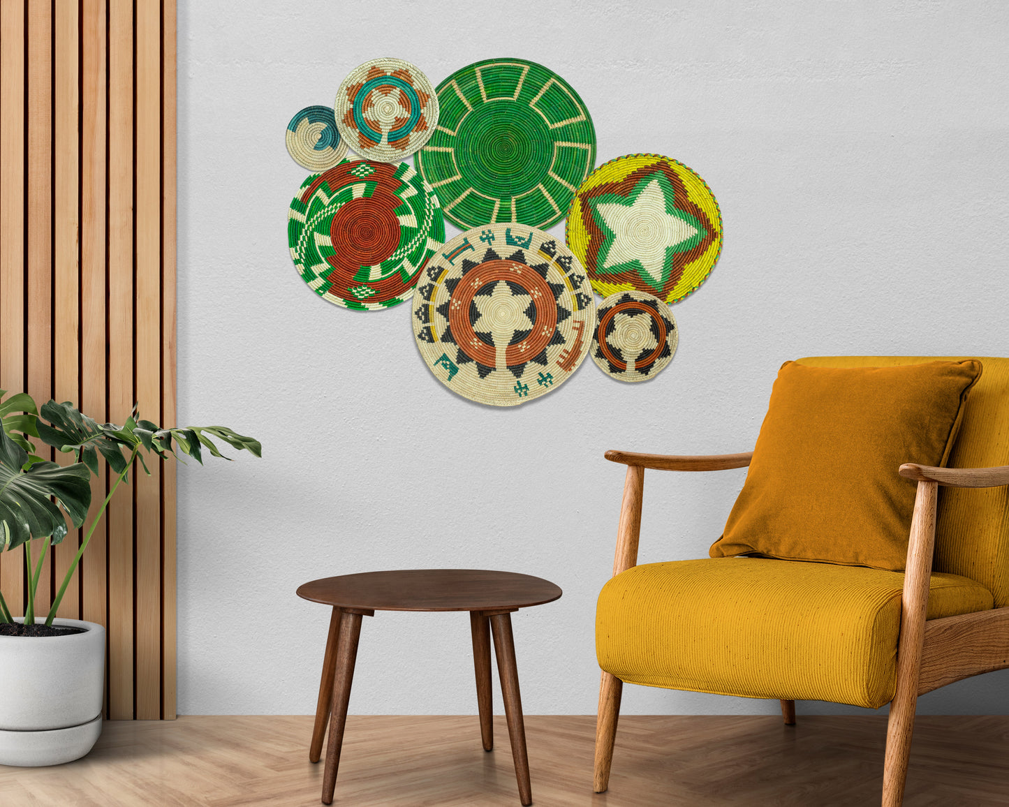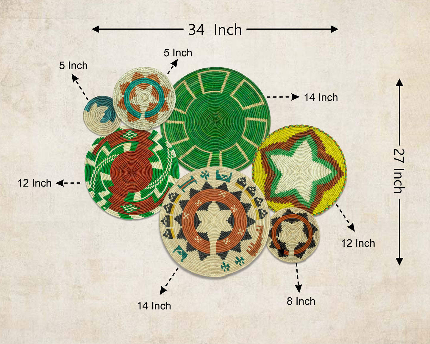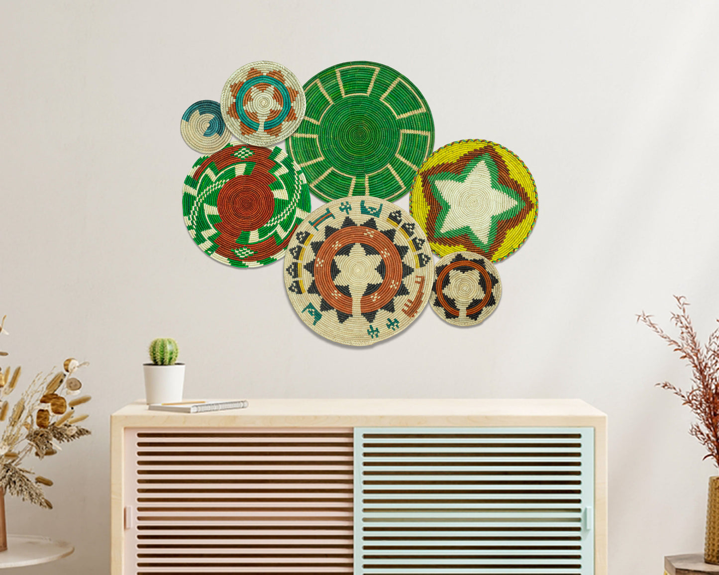 Set of 7 Handwoven wall baskets Set 306-7-N