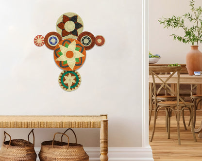 Elevate your home decor with the warmth, texture, and artisanal craftsmanship of our Handwoven Wall Basket Set. Designed to bring boho elegance and rustic charm, these stunning baskets are crafted from natural palm leaves, Sea grass, and plant-based dyes, making them an eco-friendly and timeless decor choice.