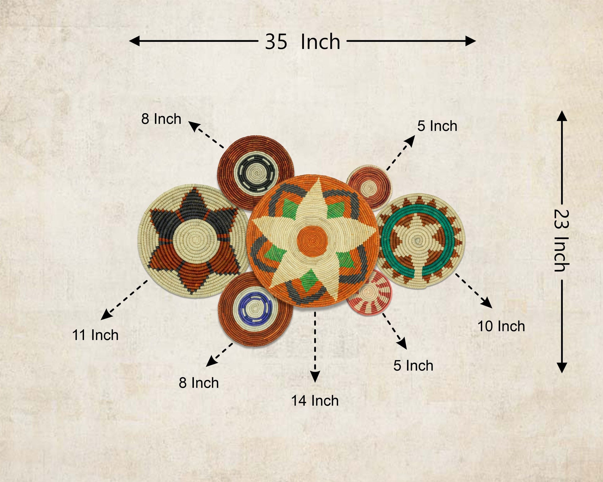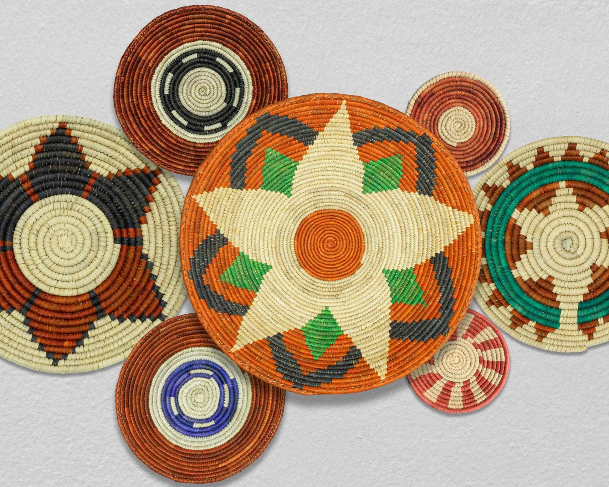 Set of 7 Handwoven wall baskets Set 311-7-N