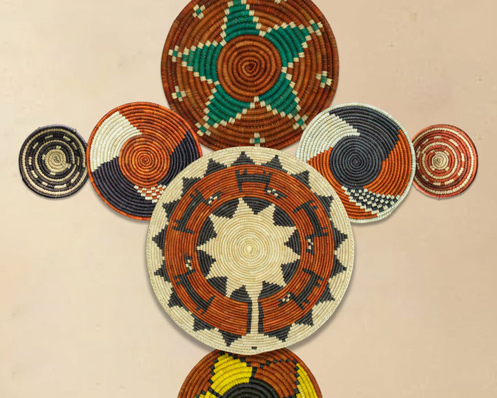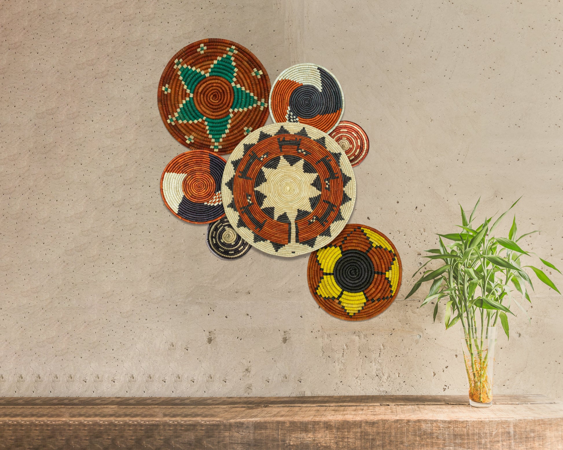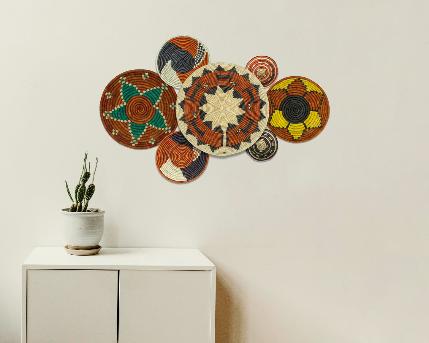Each basket in this set is uniquely woven by skilled artisans, ensuring one-of-a-kind patterns and intricate details that add depth and character to any space. Whether you arrange them as a statement wall display, use them as tabletop decor, or incorporate them into a gallery wall, these baskets effortlessly enhance Boho, farmhouse, rustic, and modern interiors.