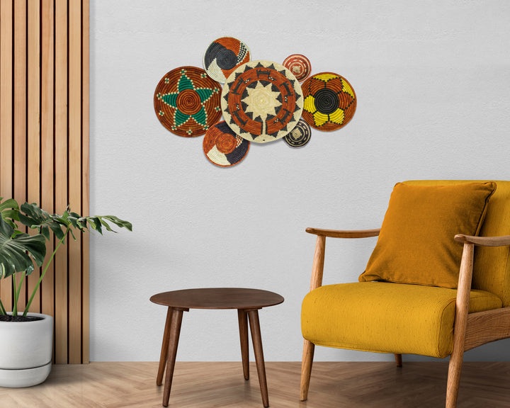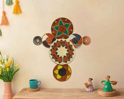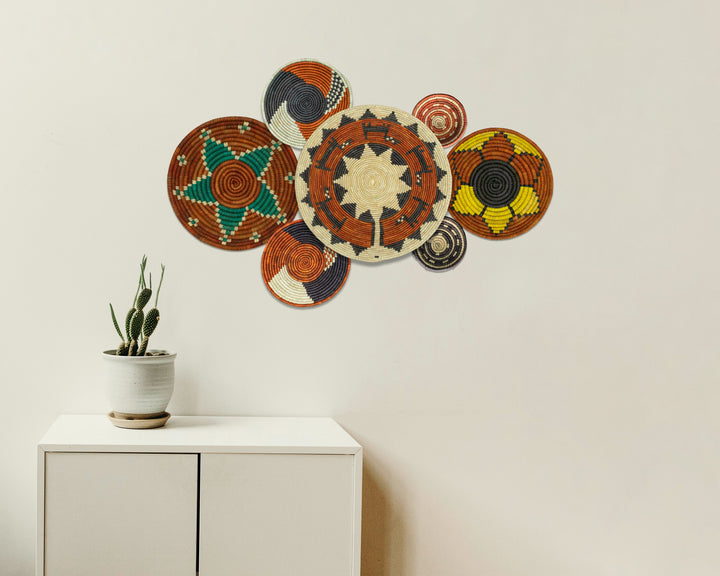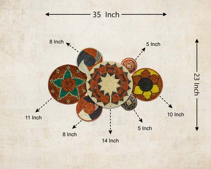 Set of 7 Handwoven wall baskets Set 312-7-N