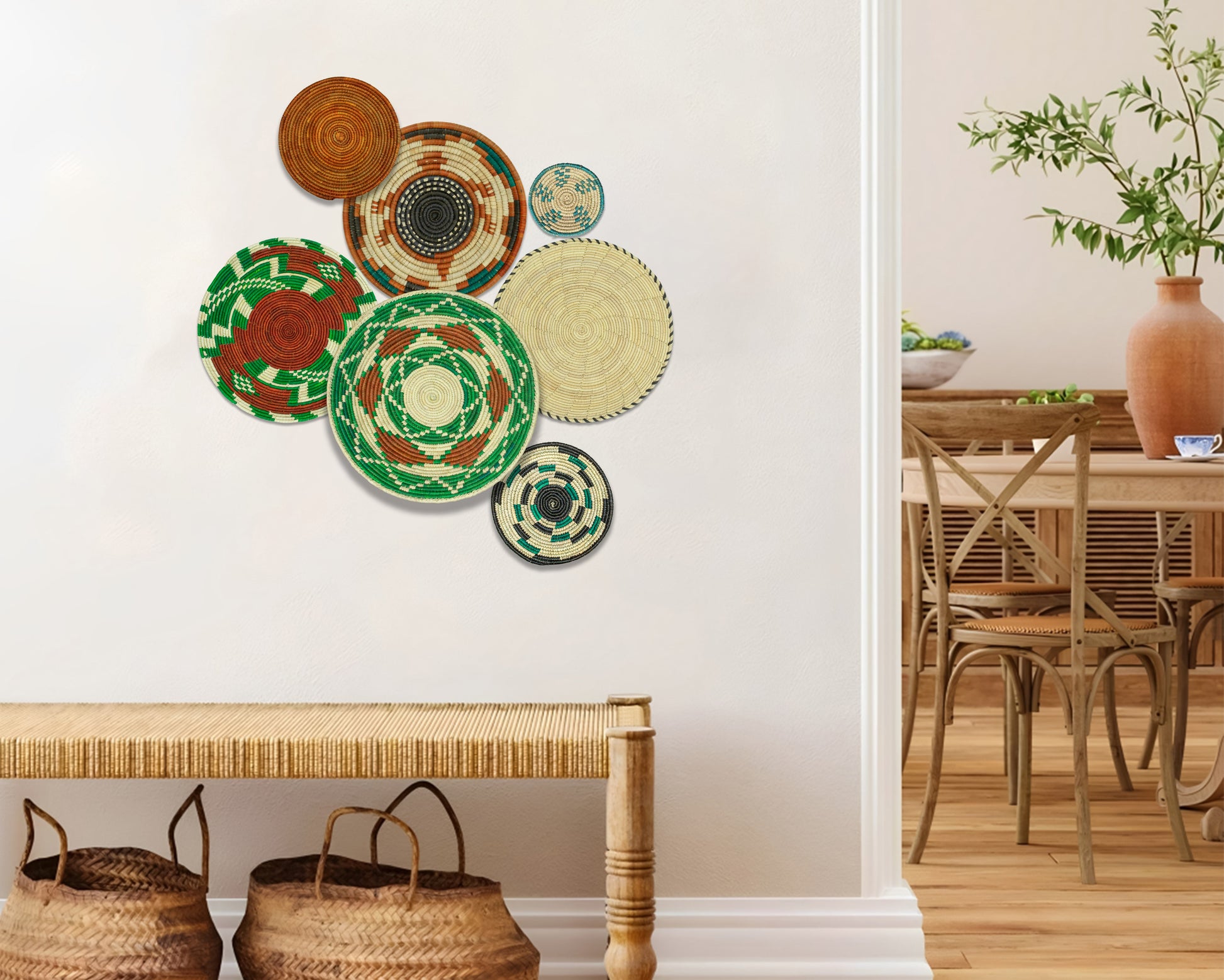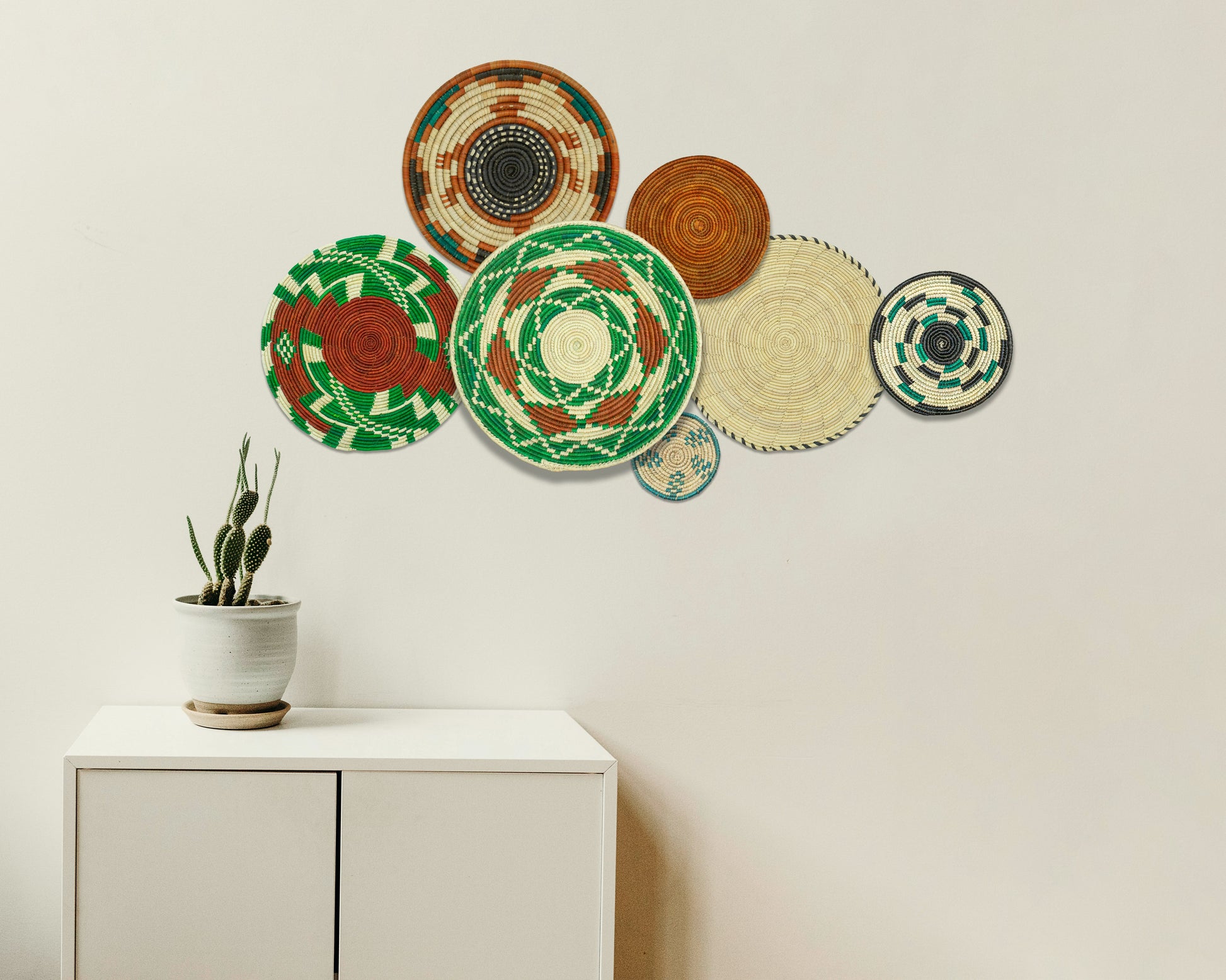 Each basket in this set is uniquely woven by skilled artisans, ensuring one-of-a-kind patterns and intricate details that add depth and character to any space. Whether you arrange them as a statement wall display, use them as tabletop decor, or incorporate them into a gallery wall, these baskets effortlessly enhance Boho, farmhouse, rustic, and modern interiors.